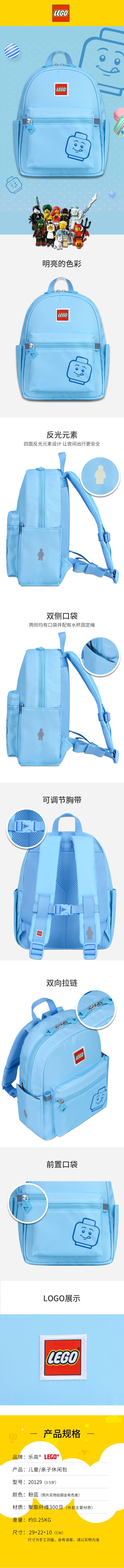 商品名称:LEGO/乐高儿童休闲双肩包-蓝色20129-1936