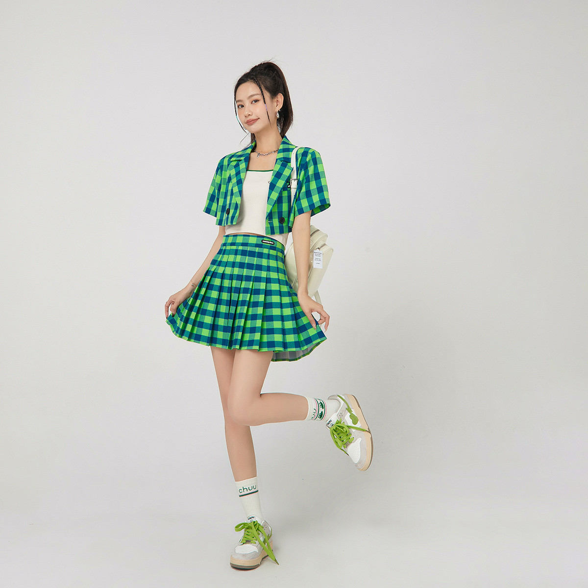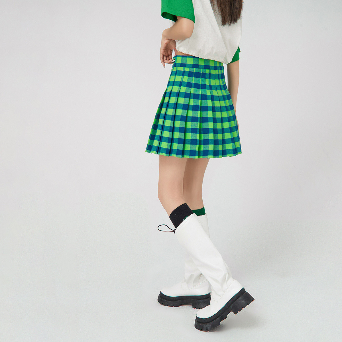 商品名称:CHUU时尚格纹高腰百褶半身裙女春夏秋学院风短裙 927699