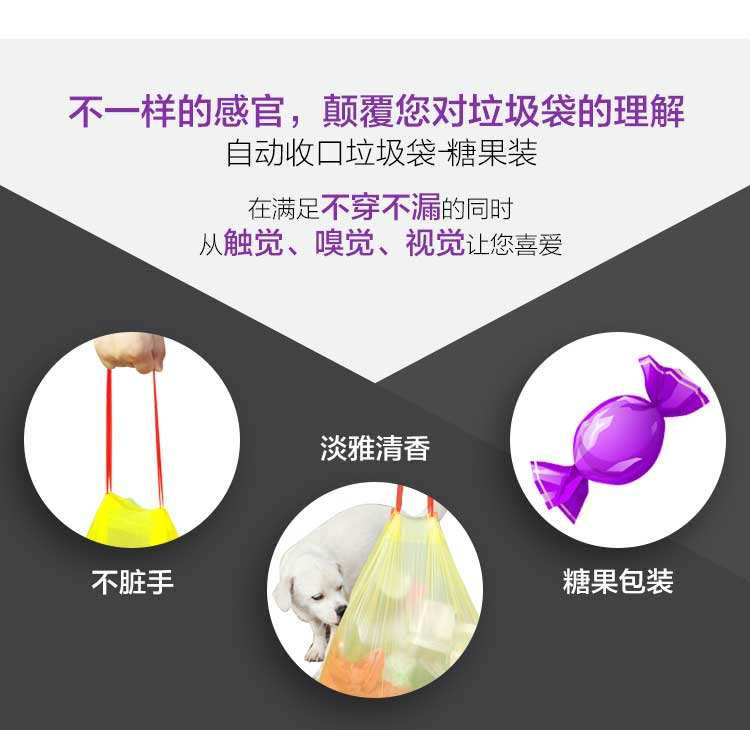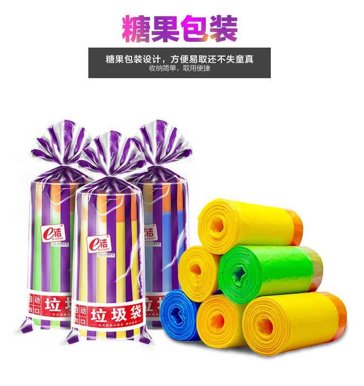 商品名称:e洁加厚自动收口垃圾袋糖果装-小号30只*5卷
