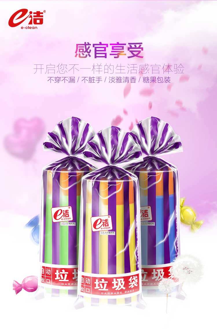 e洁加厚自动收口垃圾袋糖果装-小号30只*5卷