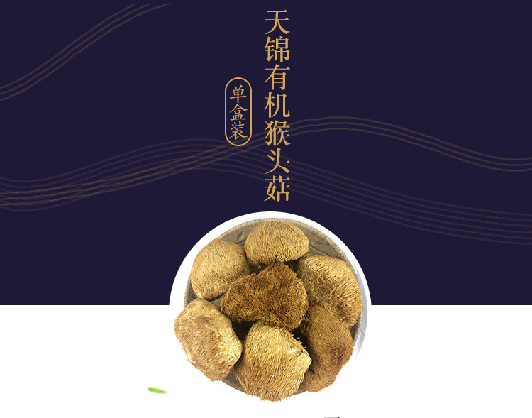 产品规格:天锦有机猴头菇单盒装200g*2盒
