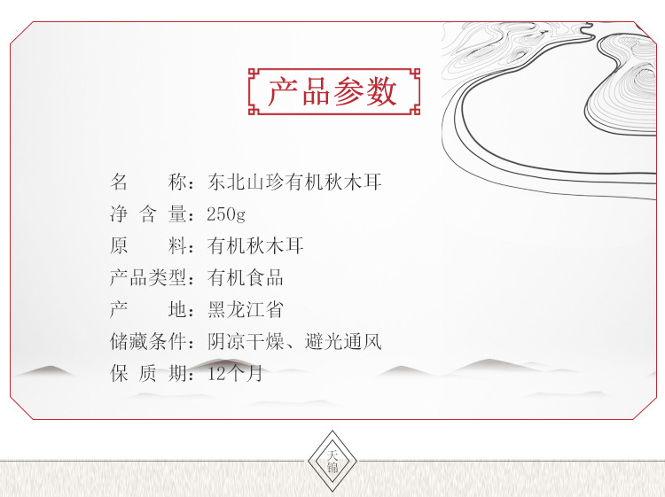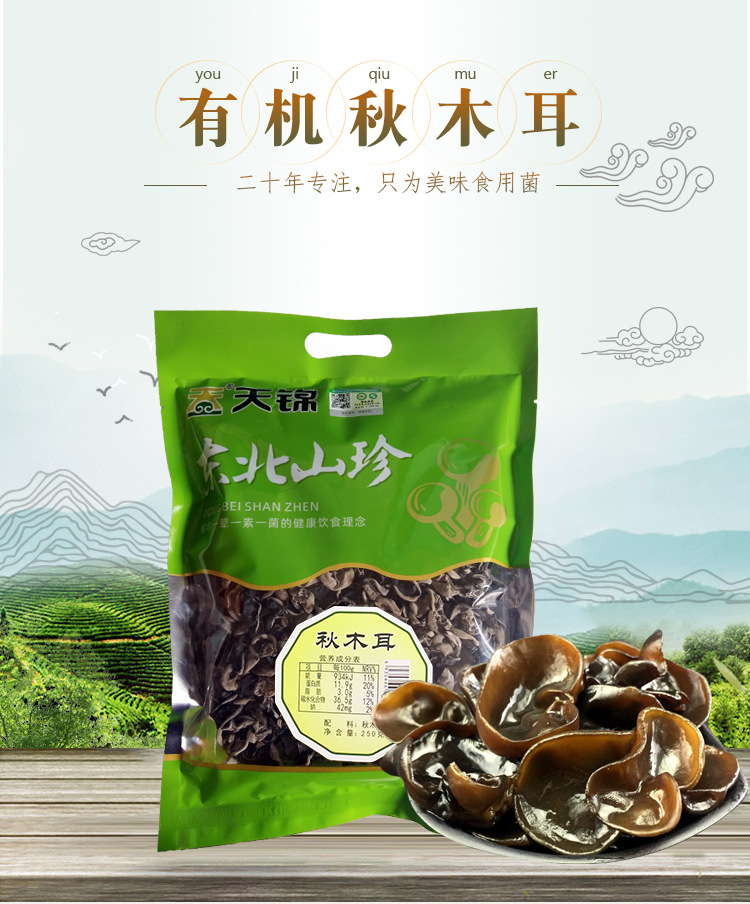 产品规格:天锦东北山珍有机秋木耳250g*2袋