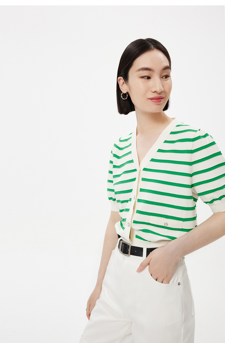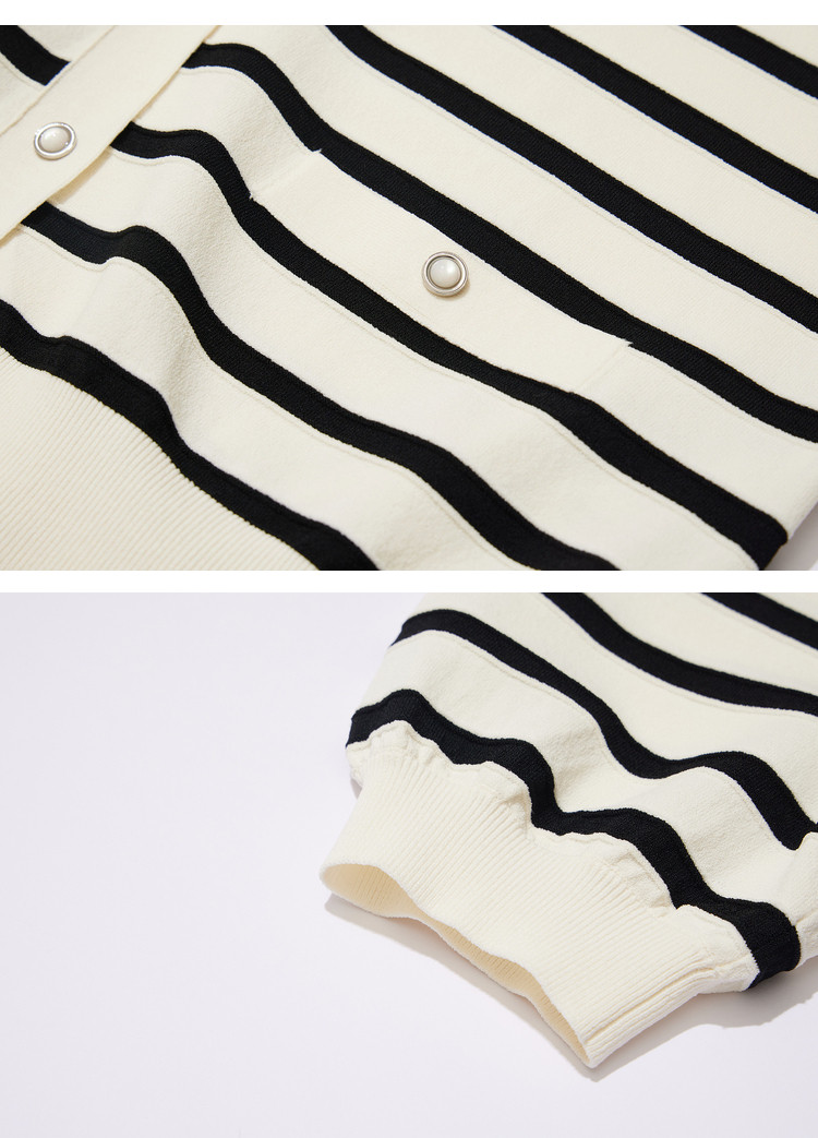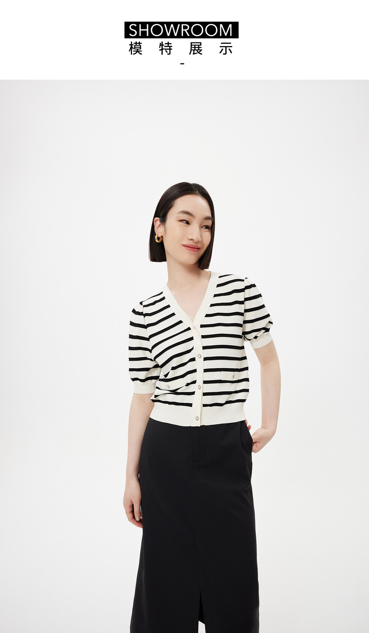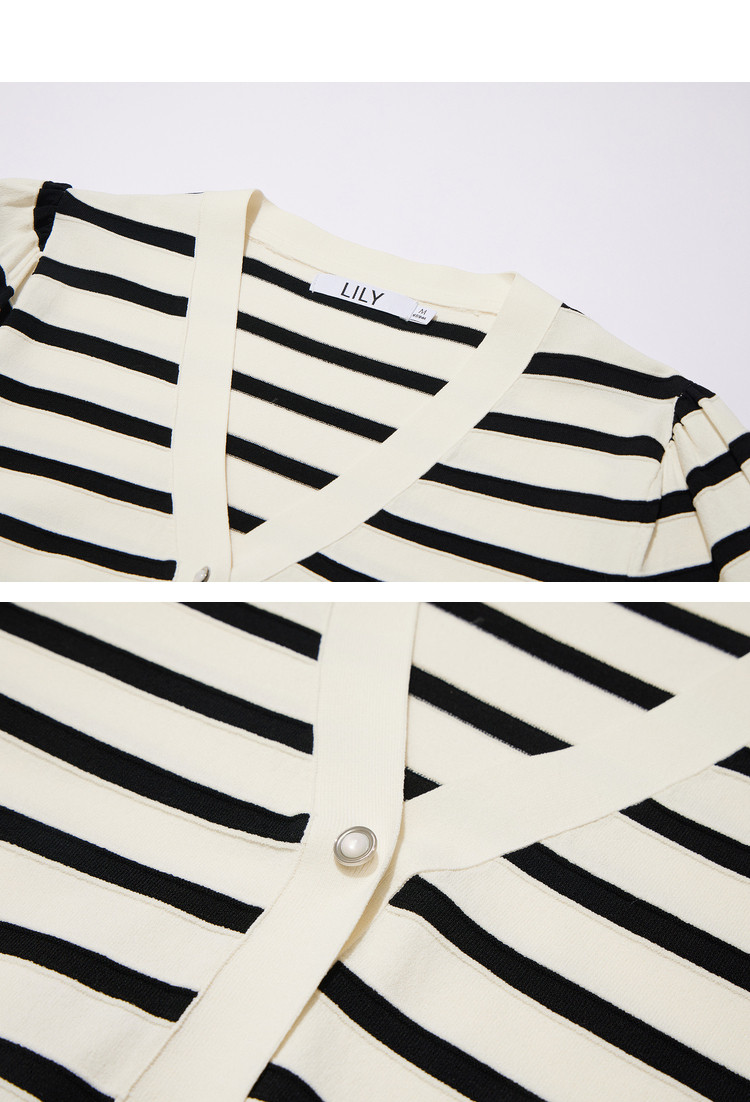 商品名称:【薄荷曼波】针织衫女春季复古简约条纹优雅V领修身针织开衫 269787
