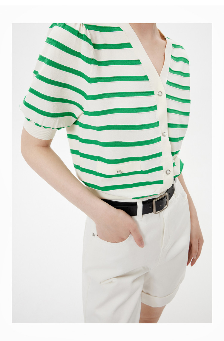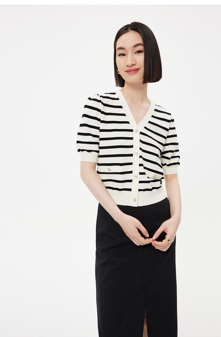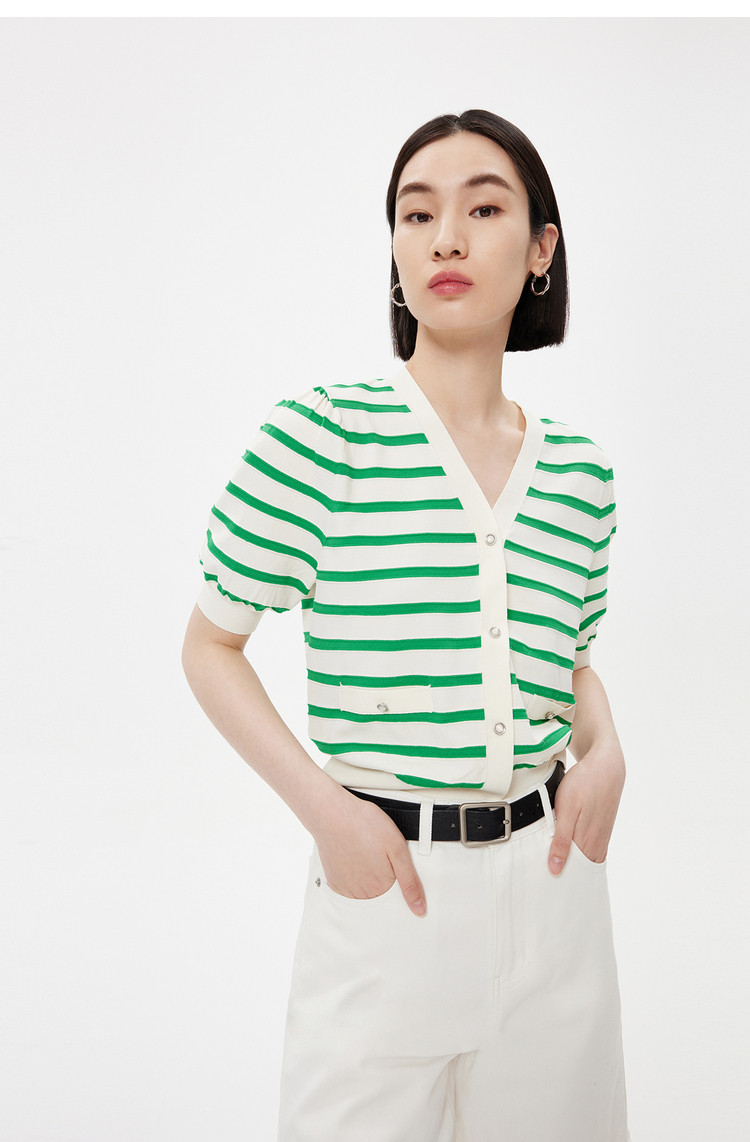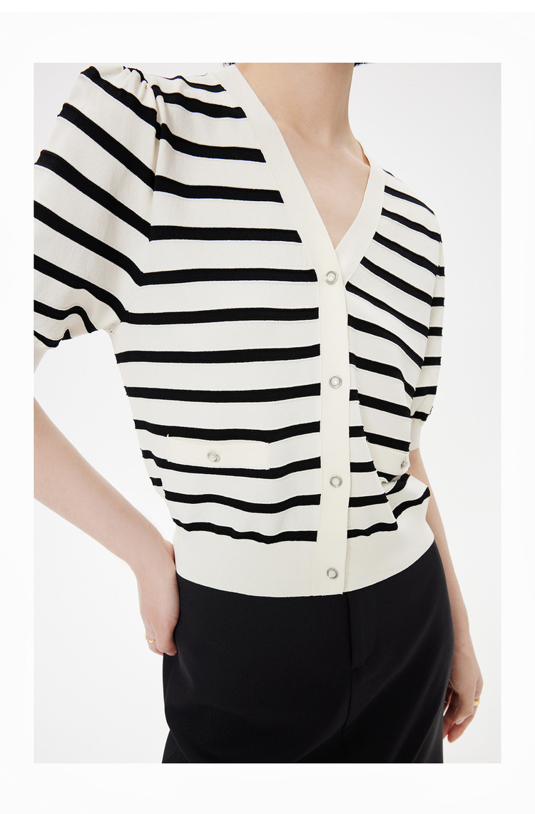 商品名称:【薄荷曼波】针织衫女春季复古简约条纹优雅V领修身针织开衫 269787