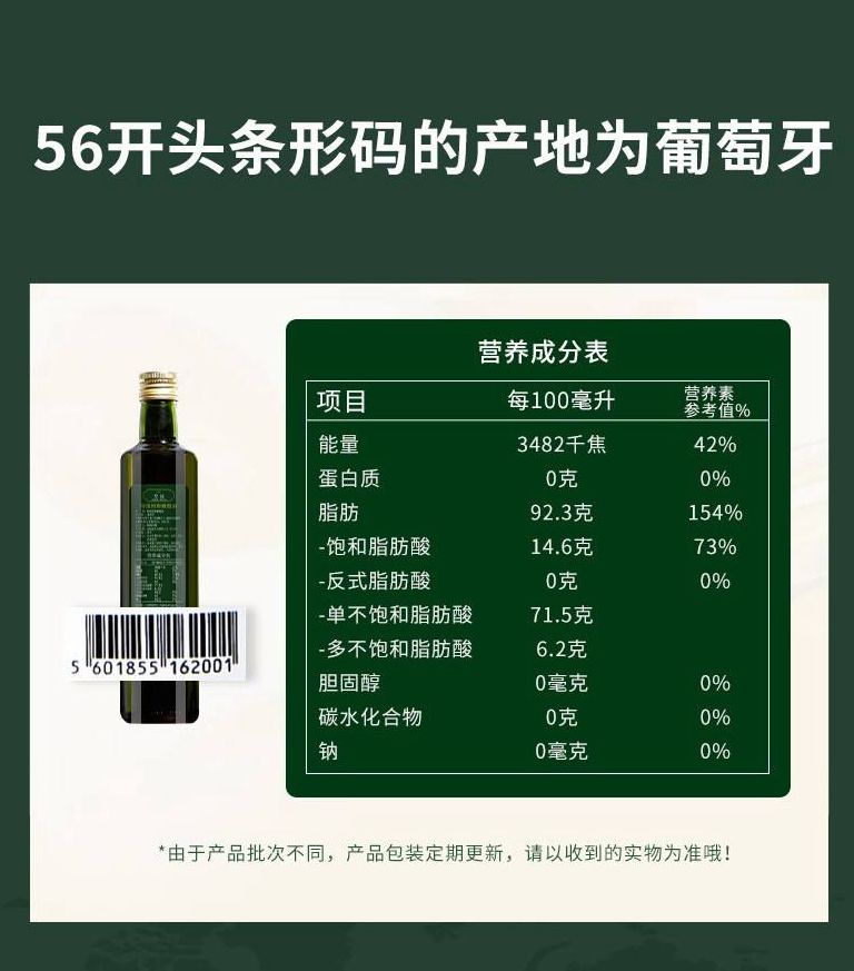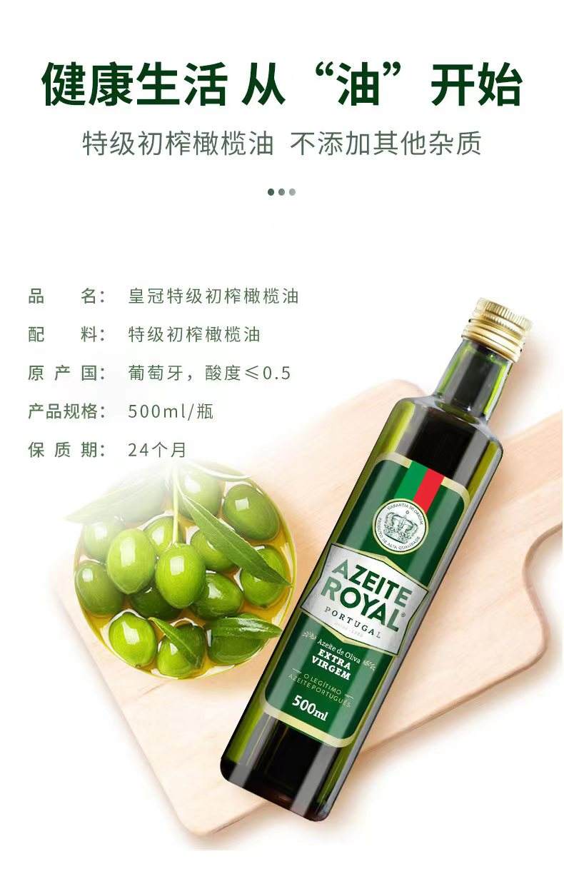 商品名称:【京东/德邦配送】AZEITE ROYAL/皇冠特级初榨橄榄油500ml