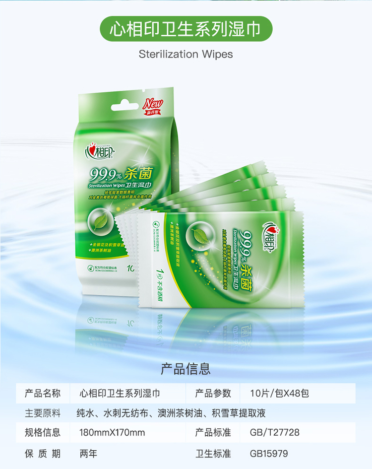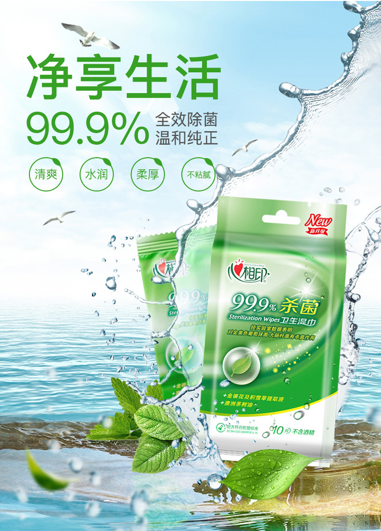 商品名称:心相印99.9%杀菌消毒卫生湿巾便携装10片*20包10XCA001