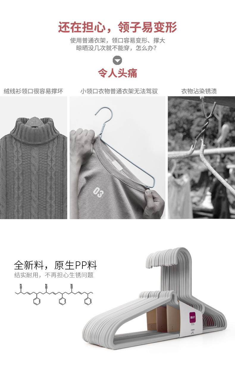 商品名称:Solely/顺艺防滑无痕塑料护领衣架20只装