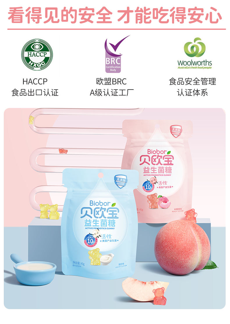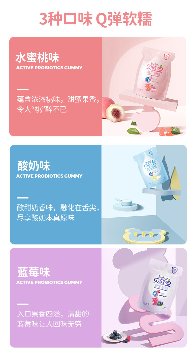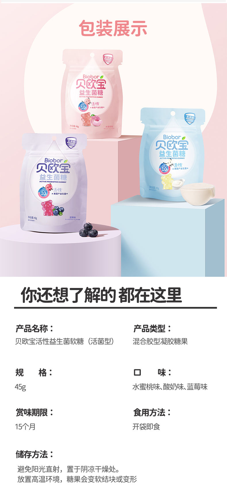 商品名称:Biobor/贝欧宝活性益生菌软糖-混合口味45g*6袋
