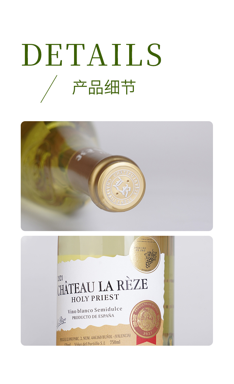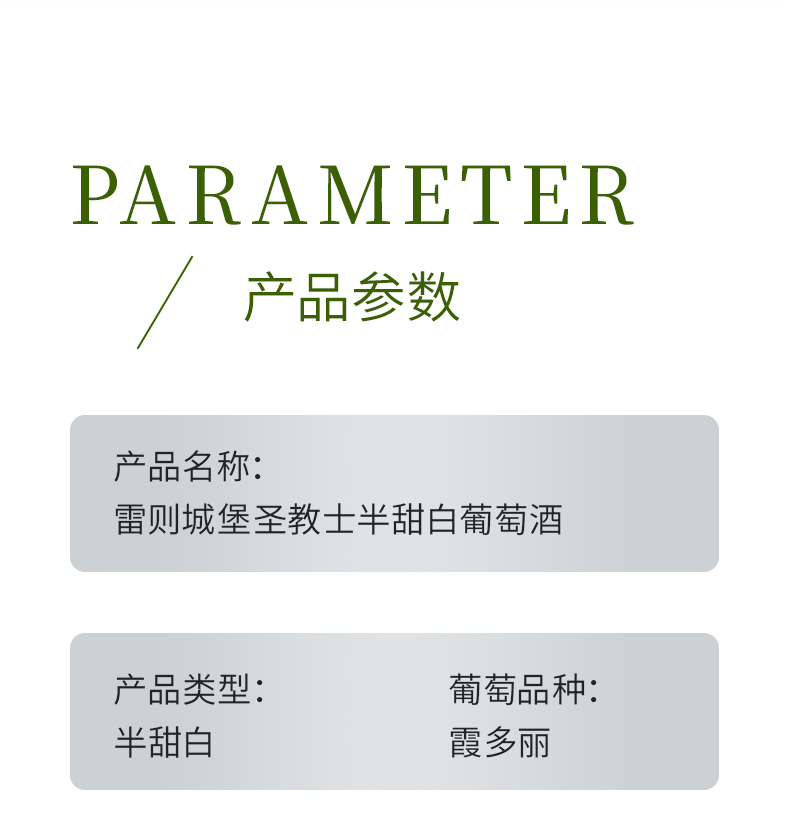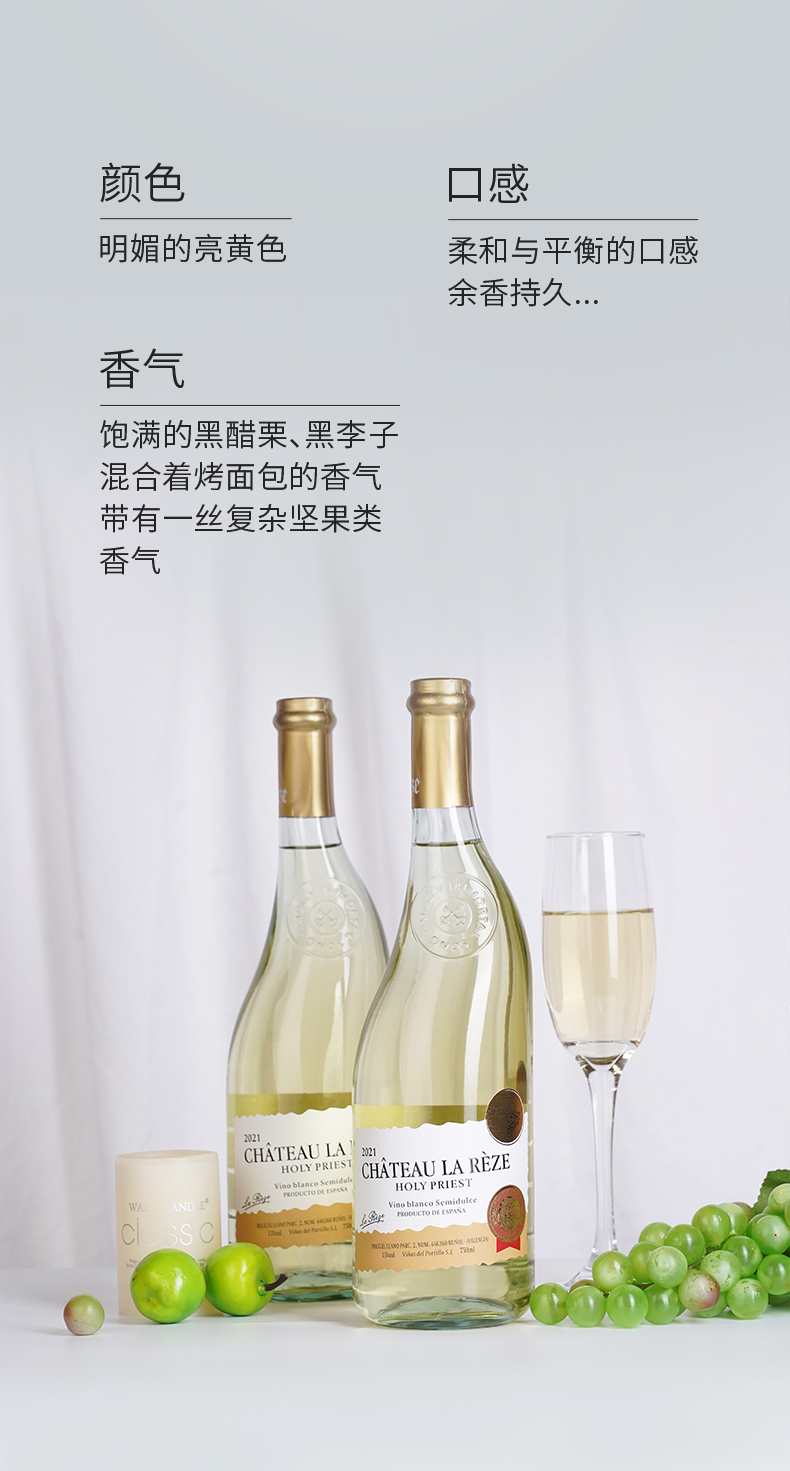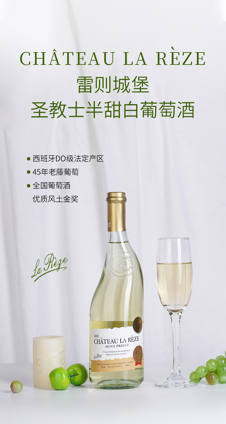 商品名称:西班牙进口DO级雷则城堡圣教士半甜白葡萄酒750ml*4瓶 13度微醺酒