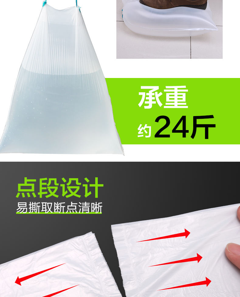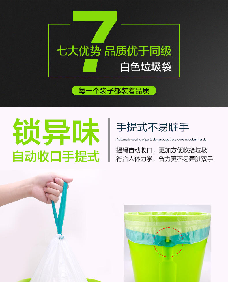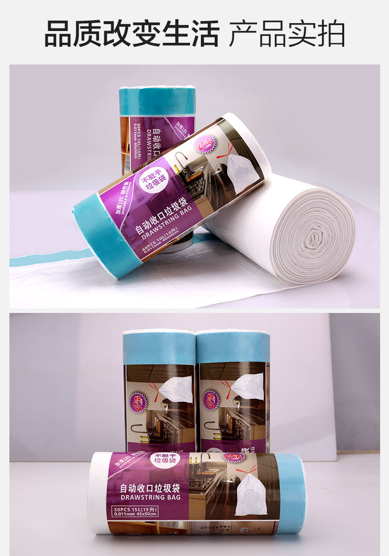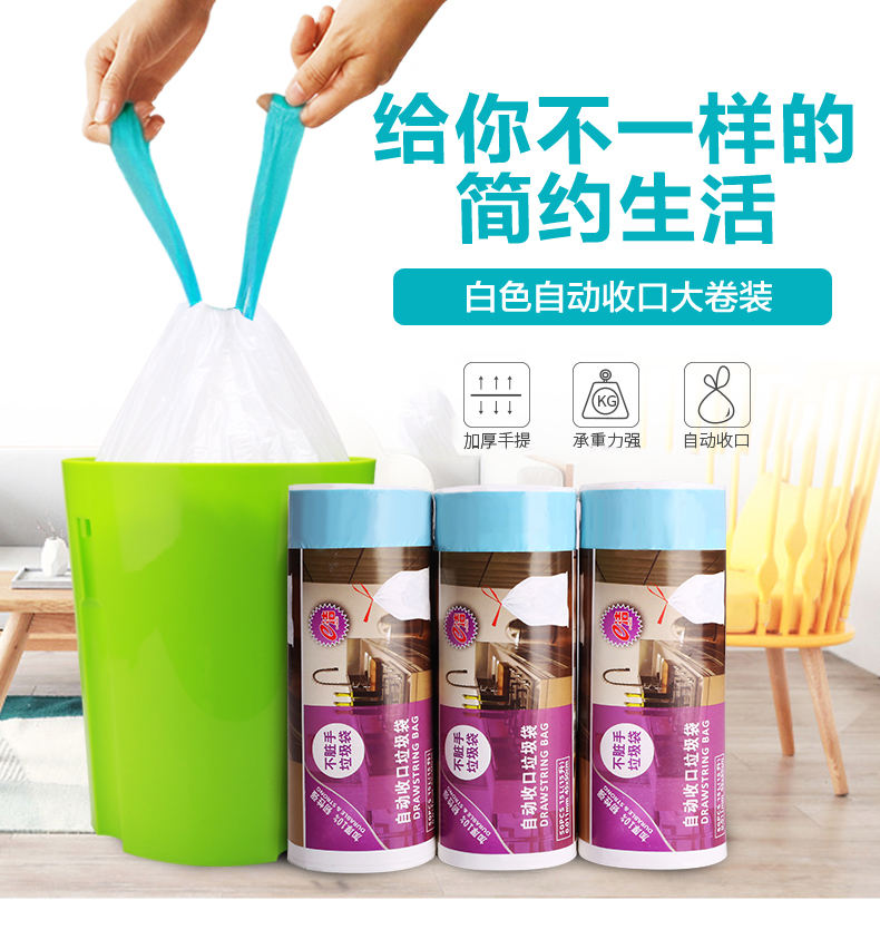商品名称:e洁自动收口垃圾袋-小号白色50个*3卷