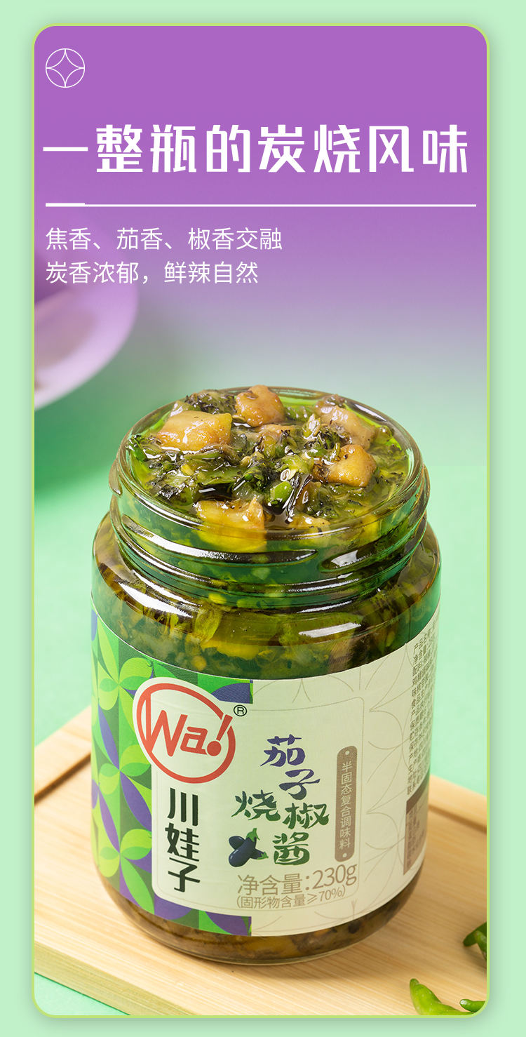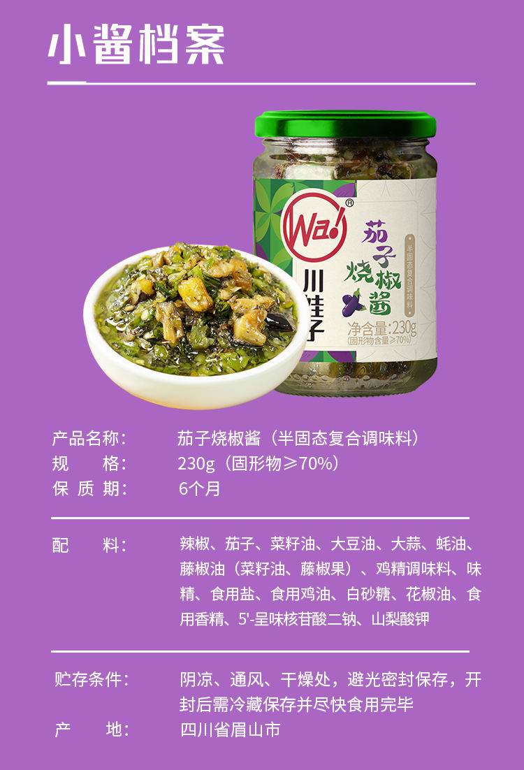 商品名称:川娃子茄子烧椒酱230g*4瓶