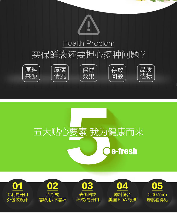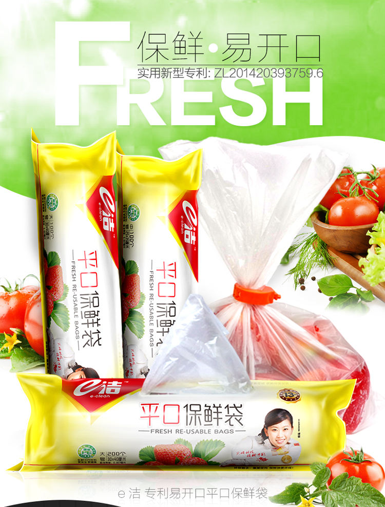 商品名称:e洁抽取式易开口保鲜袋-中号100只*3包