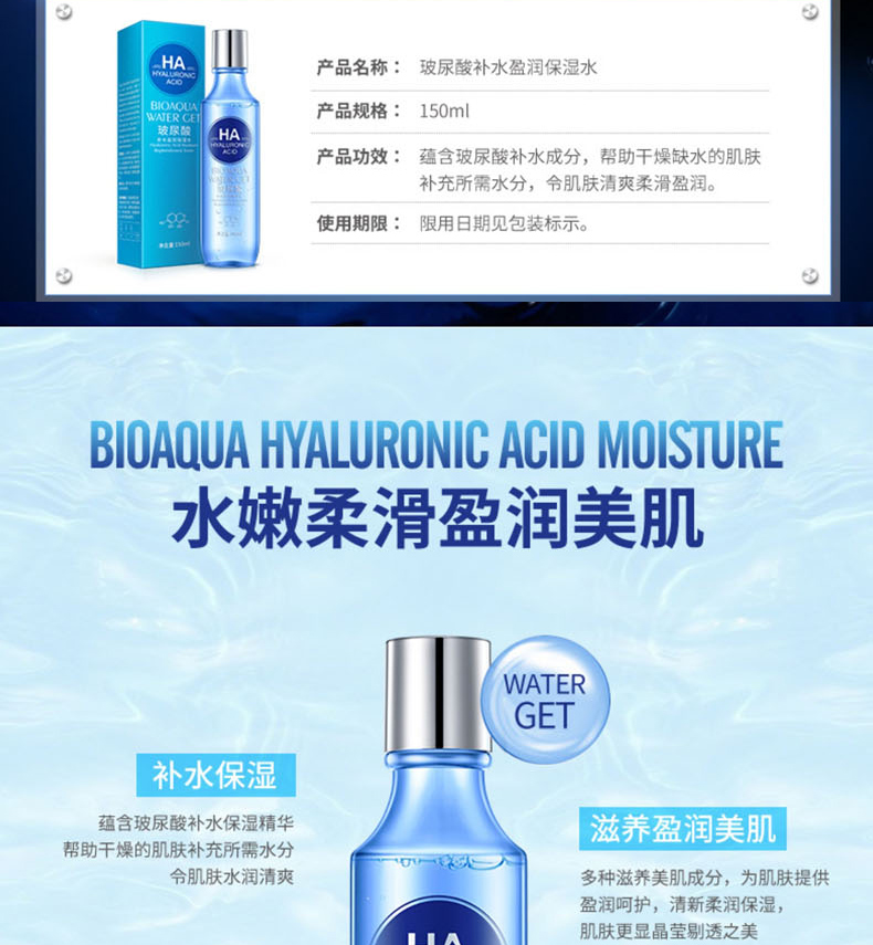 商品名称:泊泉雅玻尿酸补水盈润保湿水 保湿水润 爽肤水 150ml