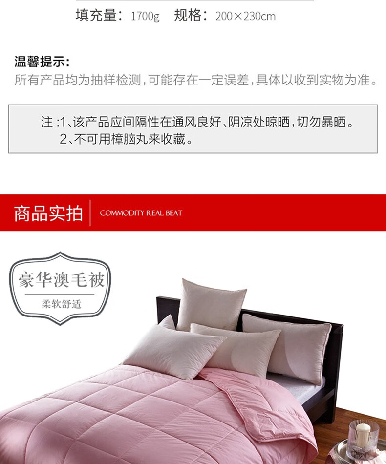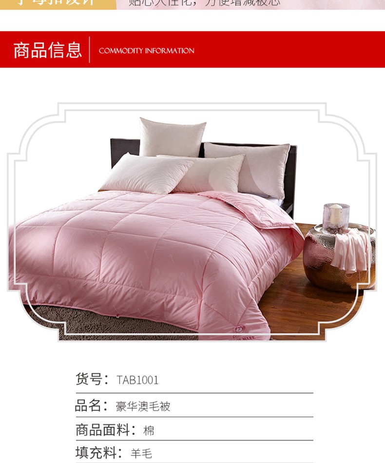 商品名称:恒源祥豪华澳洲羊毛被200*230cm 1700g
