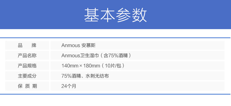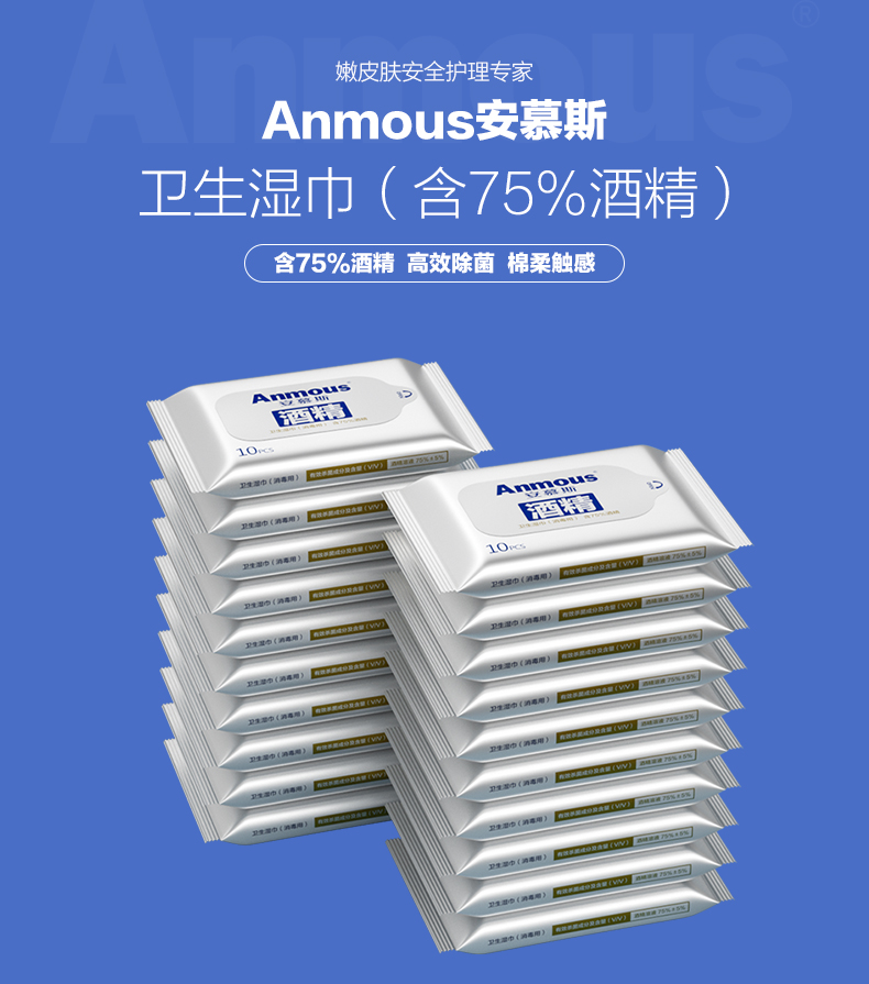 Anmous/安慕斯75%酒精卫生湿巾10抽*20包