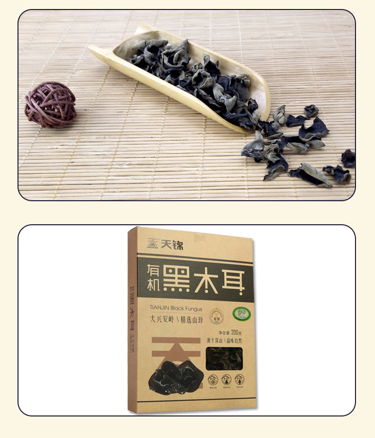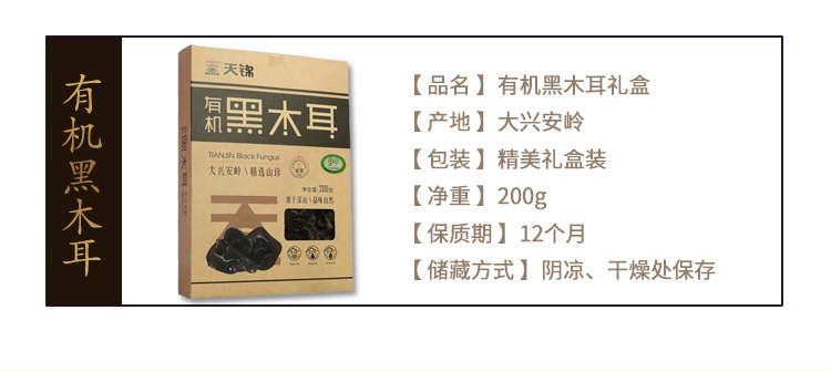 商品名称:天锦有机黑木耳纸盒装200g*2盒