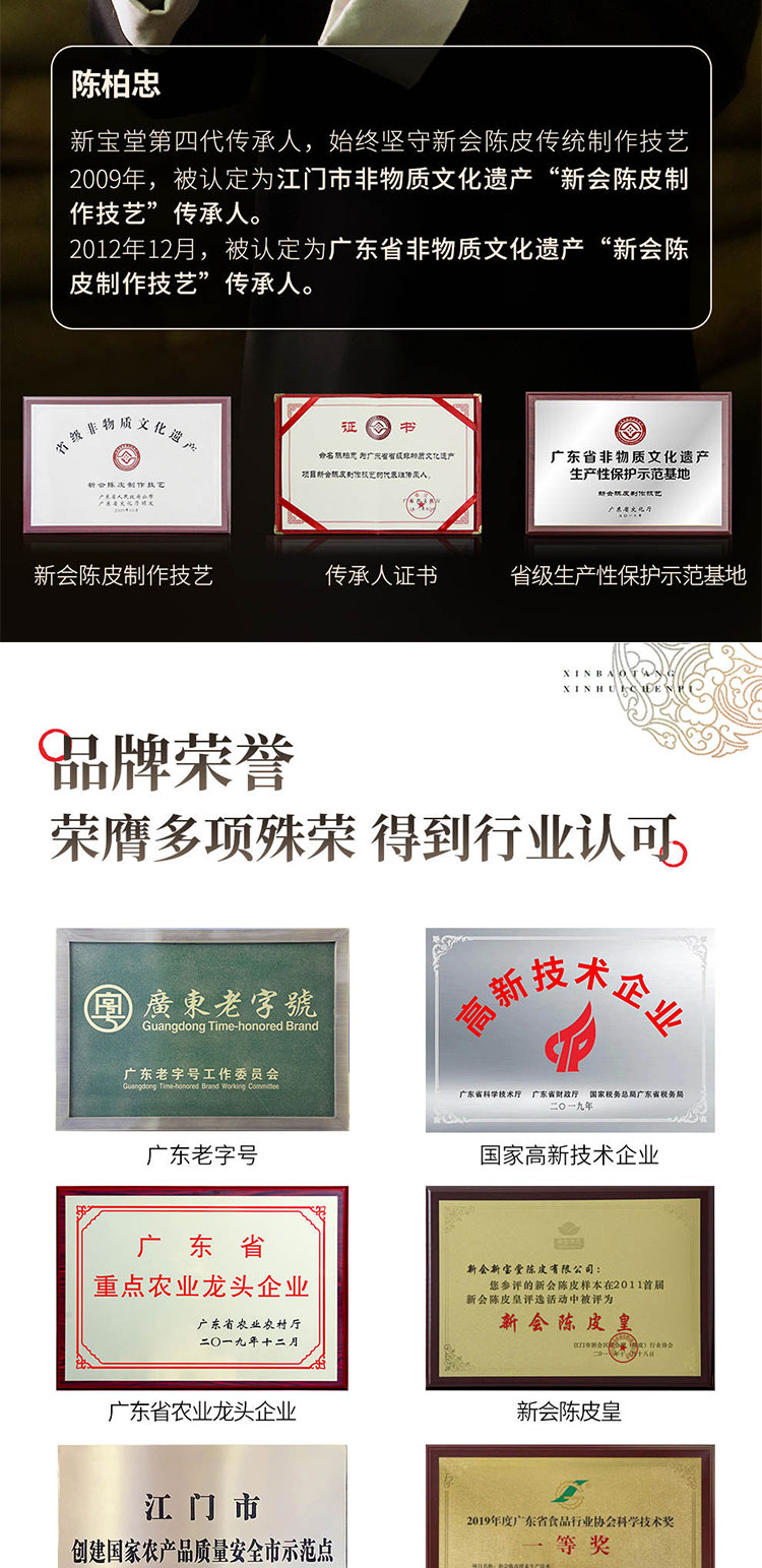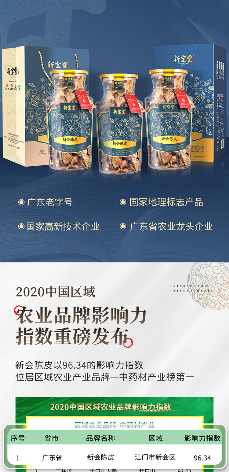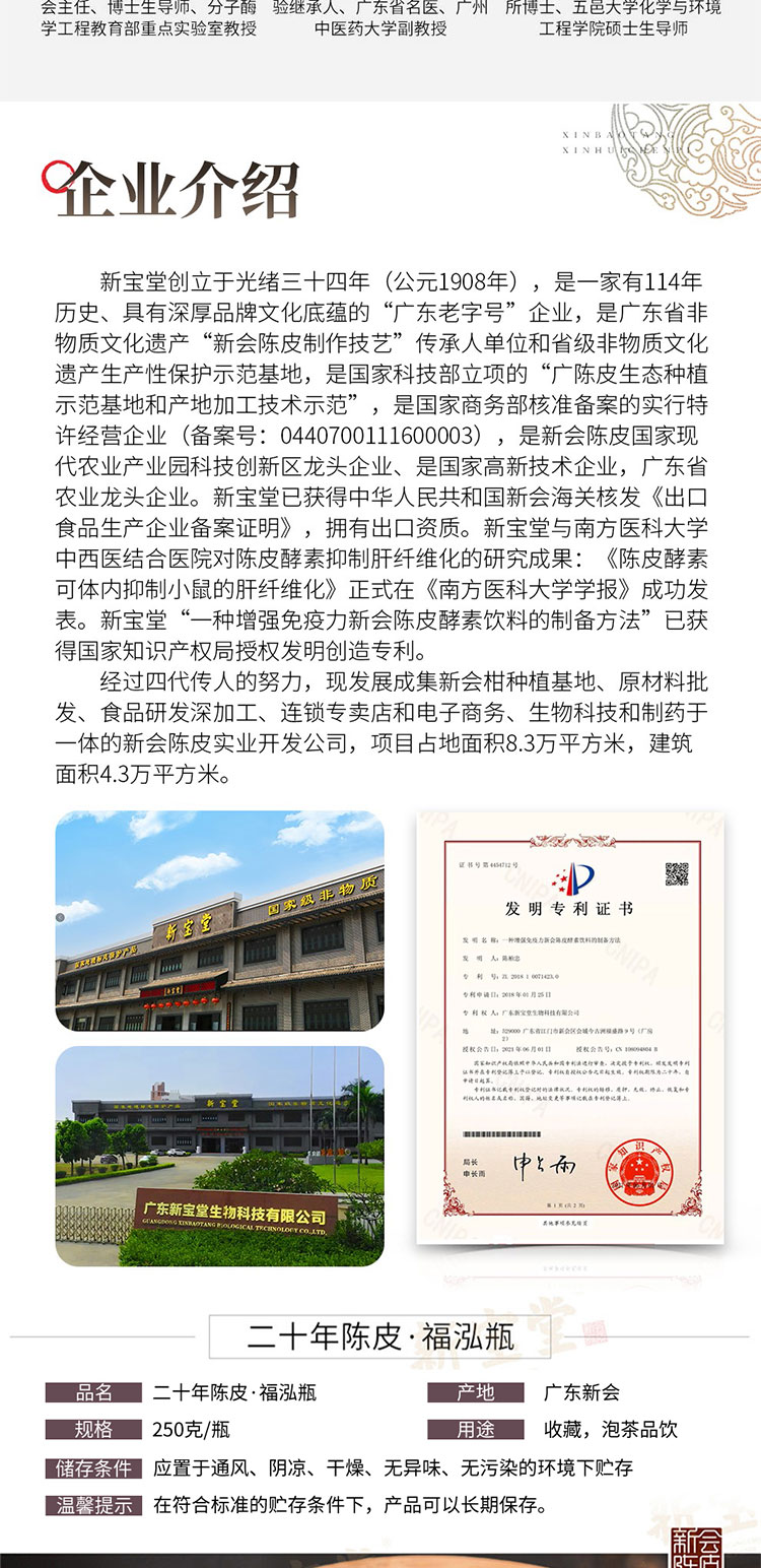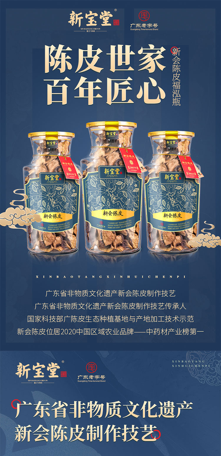 商品名称:新宝堂二十年福泓瓶新会陈皮礼盒250g