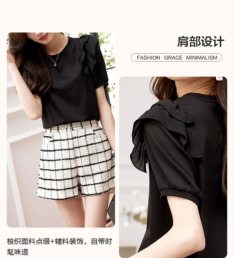 商品名称:【棉氨拼接女式t恤】夏季淑女圆领微弹短袖t恤女 409921