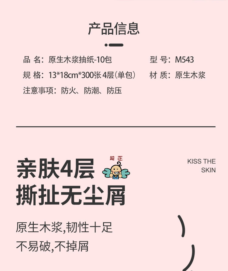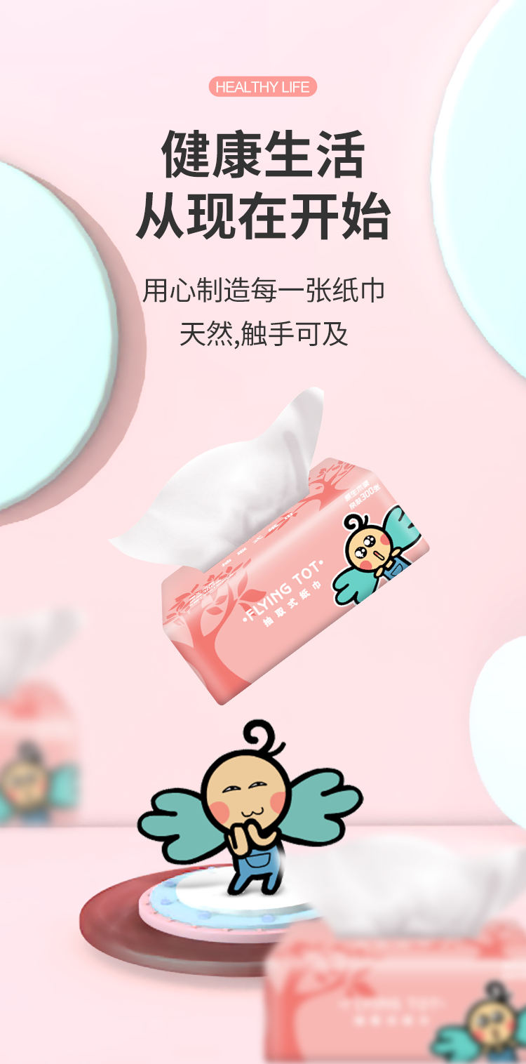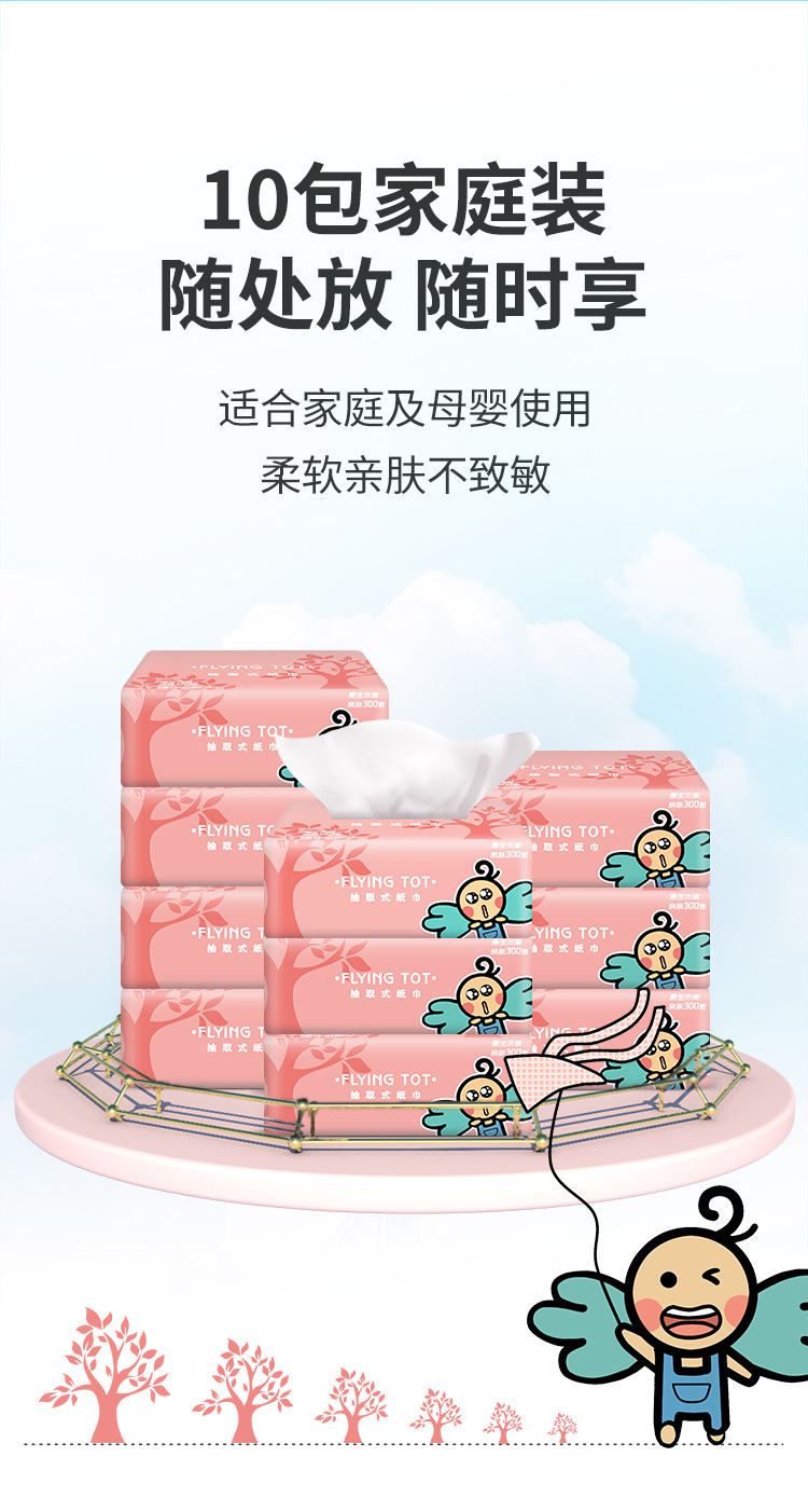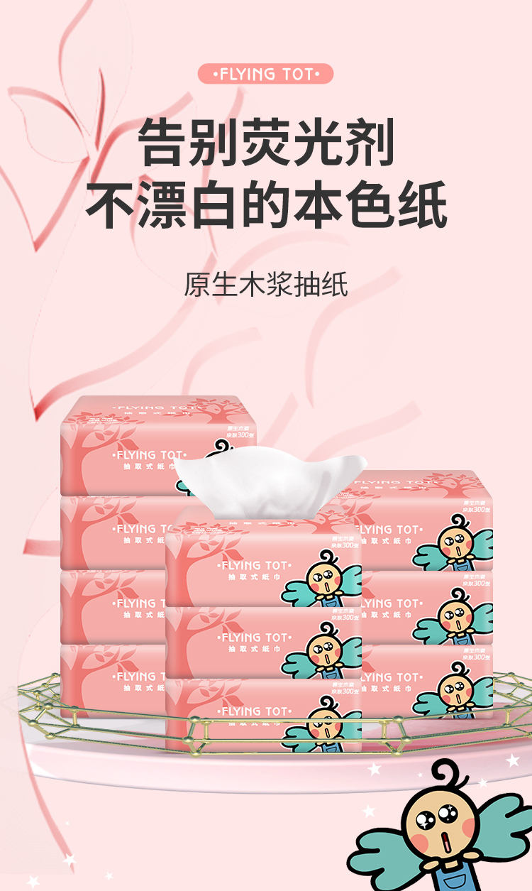 商品名称:FLYING TOT/飞行托托原生木浆四层纯色抽纸300张*20包