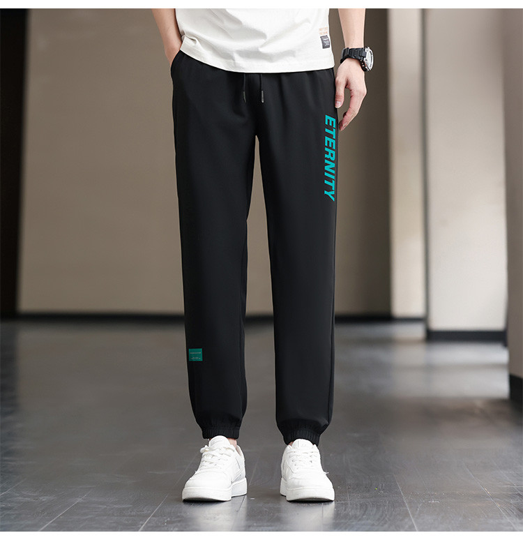 商品名称:【冰丝质感】男士夏季运动休闲裤潮流印花透气薄款跑步束脚长裤潮 378771