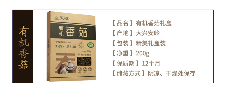 商品名称:天锦有机香菇纸盒装200g*2盒