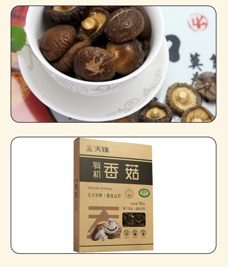 产品规格:天锦有机香菇纸盒装200g*2盒