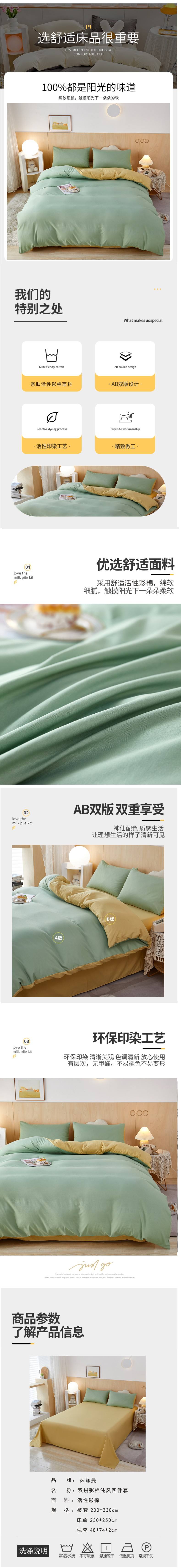 商品名称:BeGaMan/彼加曼双拼彩棉纯风床品四件套-抹茶绿200*230cm