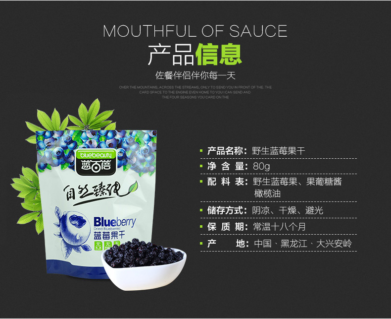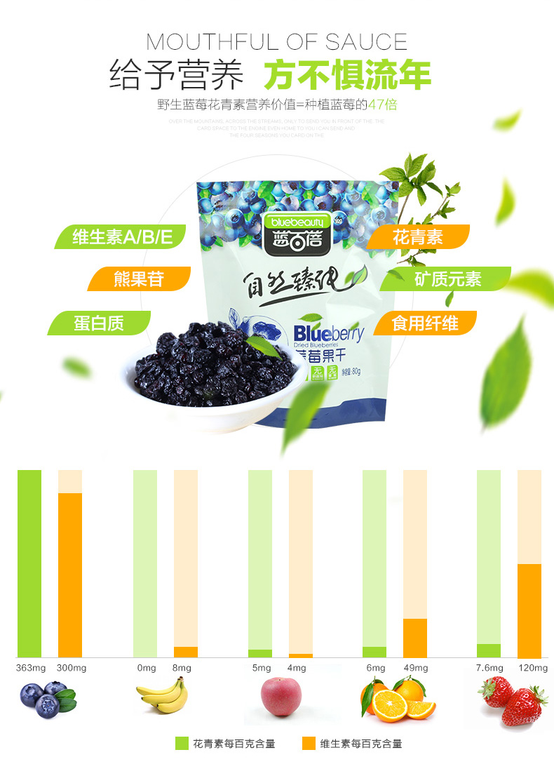 商品名称:bluebeauty/蓝百蓓野生蓝莓果干80g*4袋
