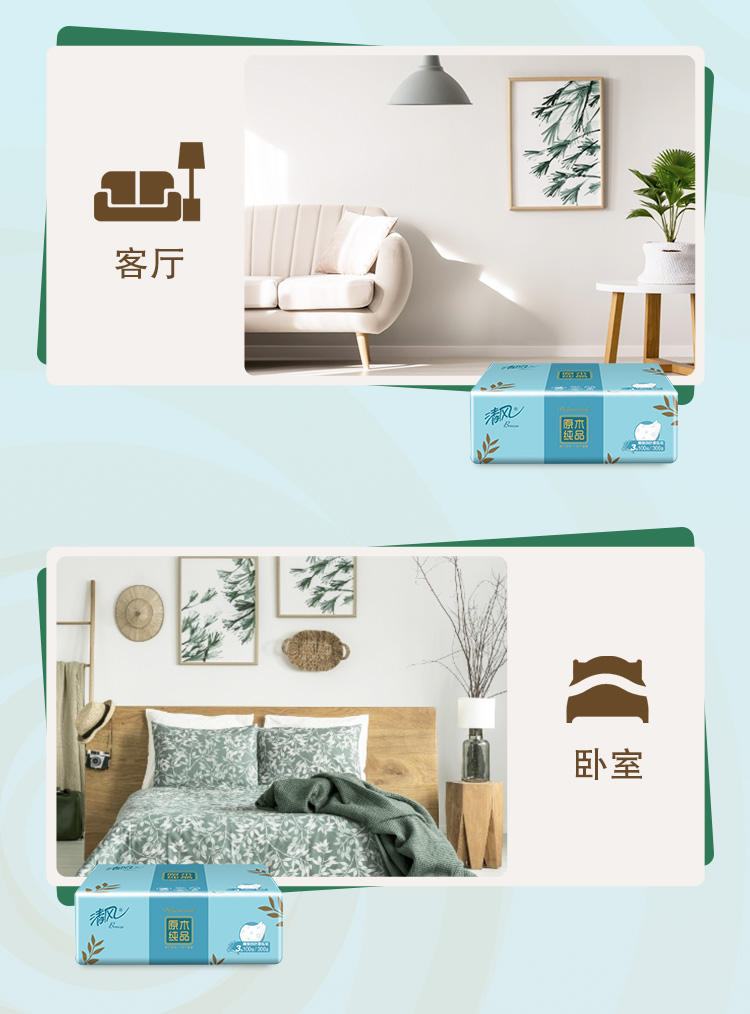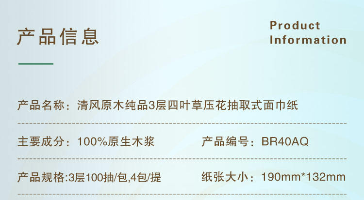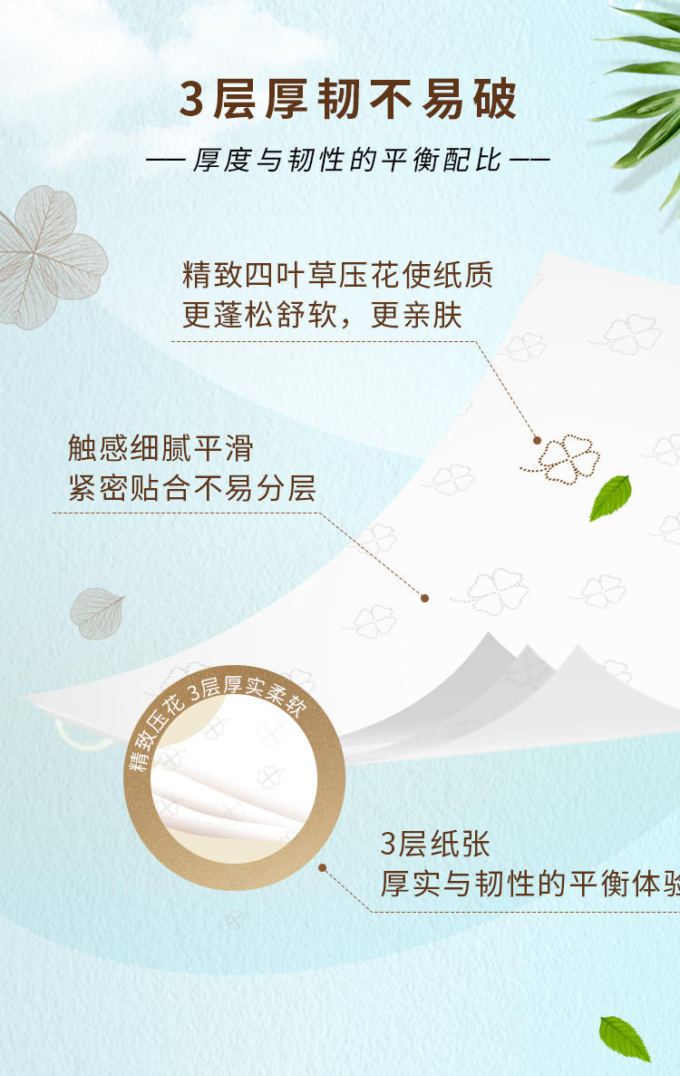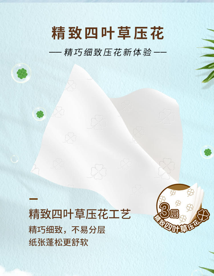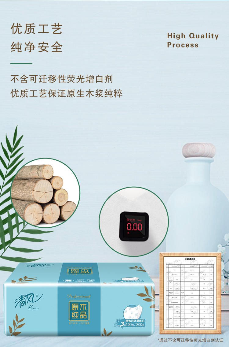 商品名称:Breeze/清风原木纯品3层四叶草压花抽取式面巾纸整箱100抽4包*6提