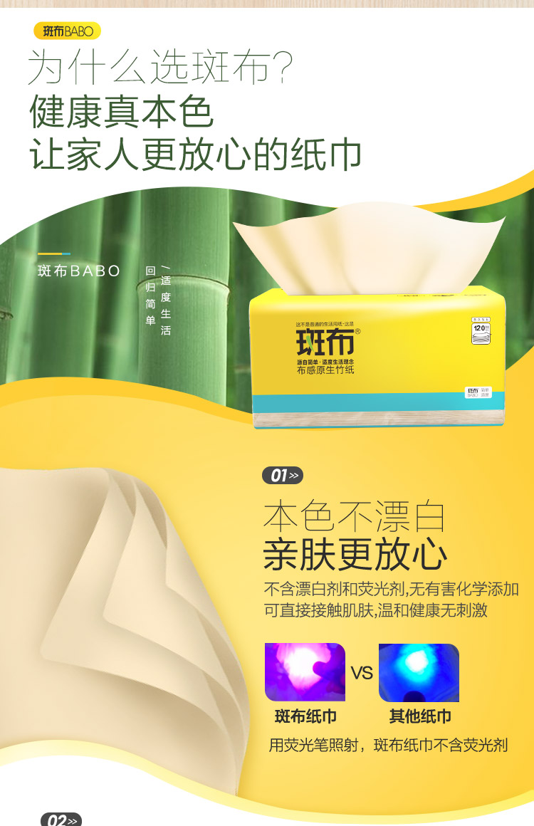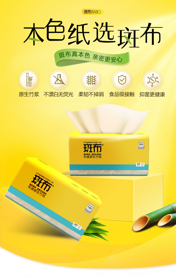 商品名称:BABO/斑布BASE系列抽纸整箱3层120抽*24包