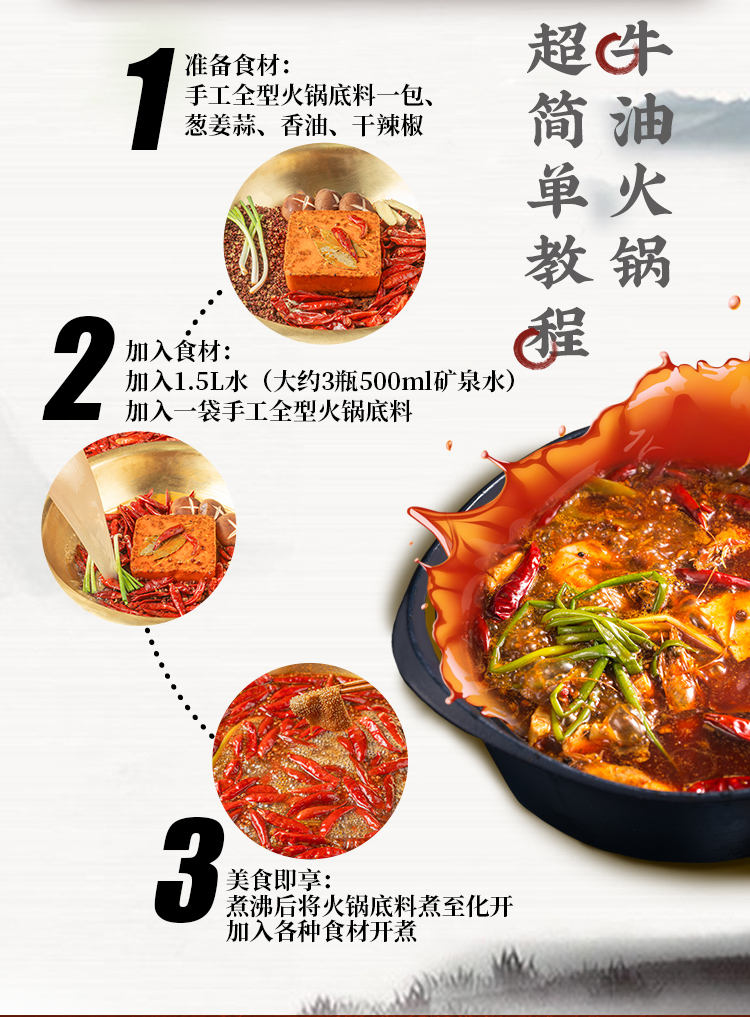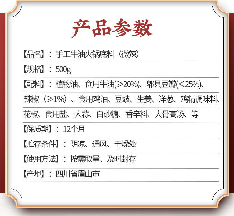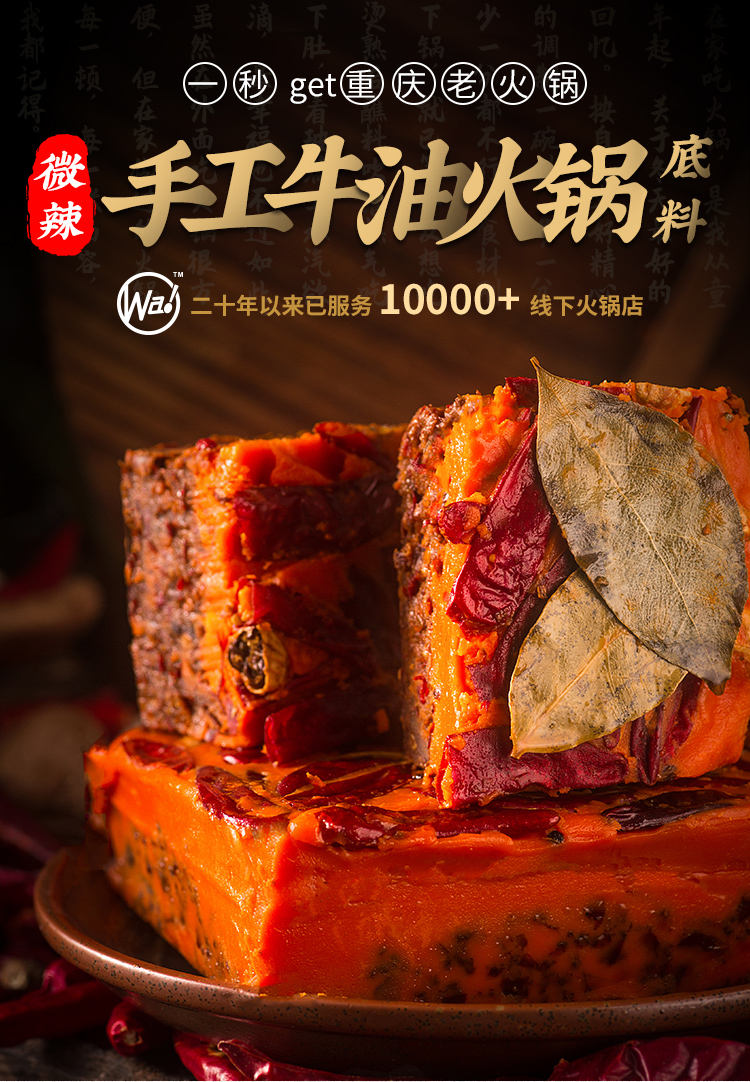 商品名称:川娃子手工牛油火锅底料-微辣500g*2袋