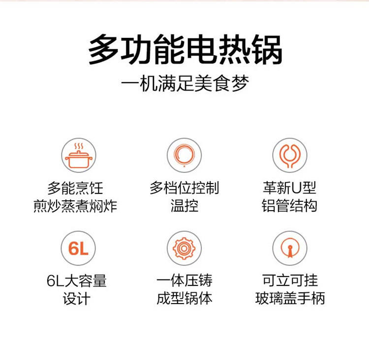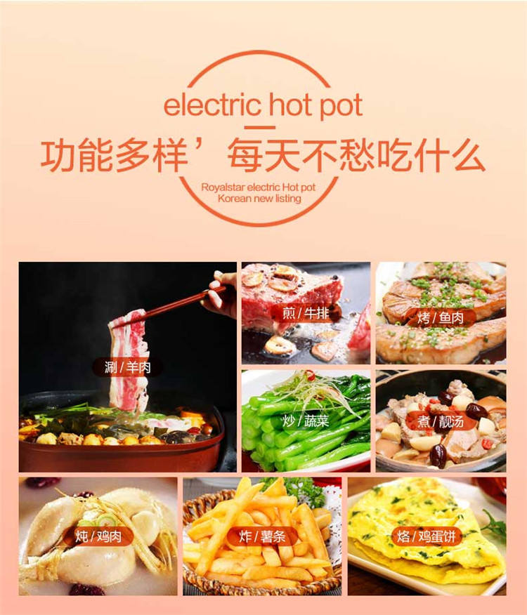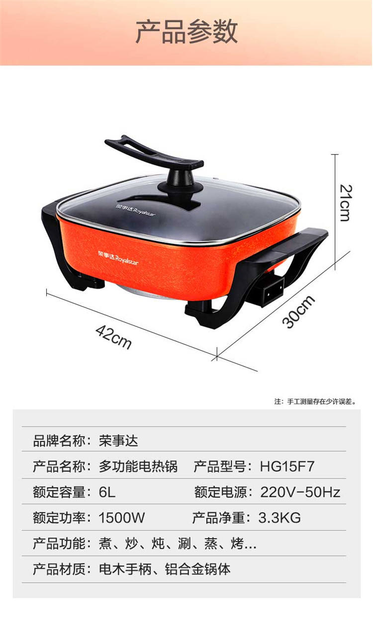 商品名称:Royalstar/荣事达6升多功能电热锅HG15F7