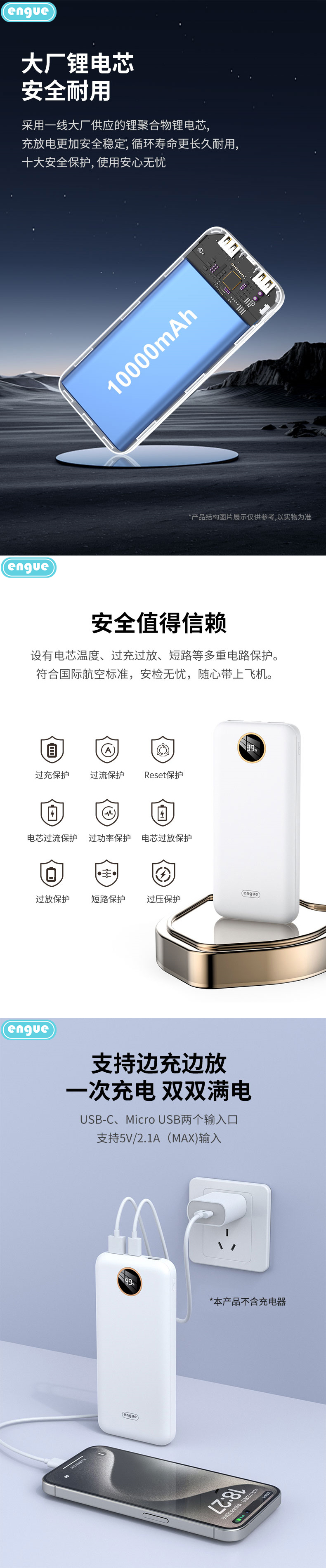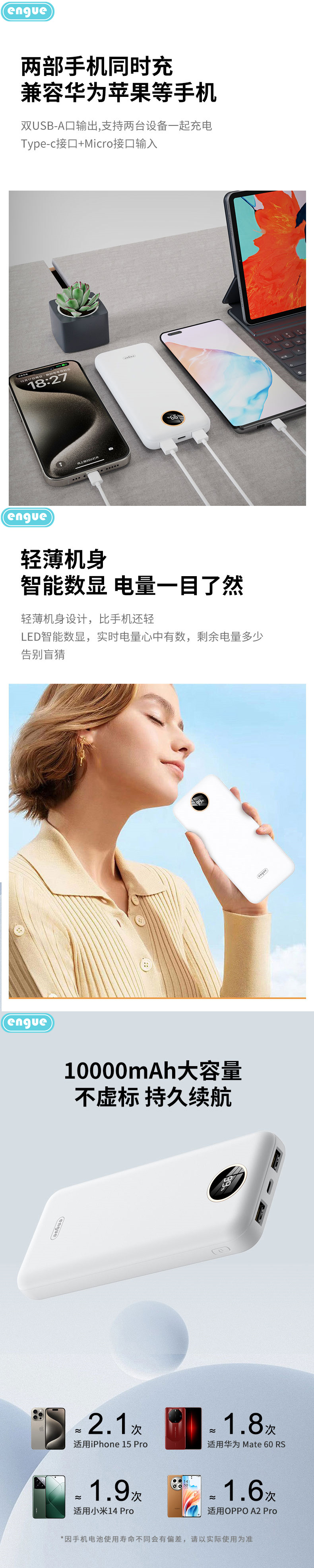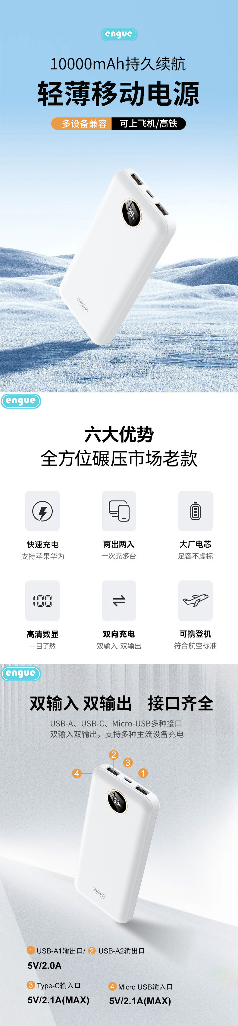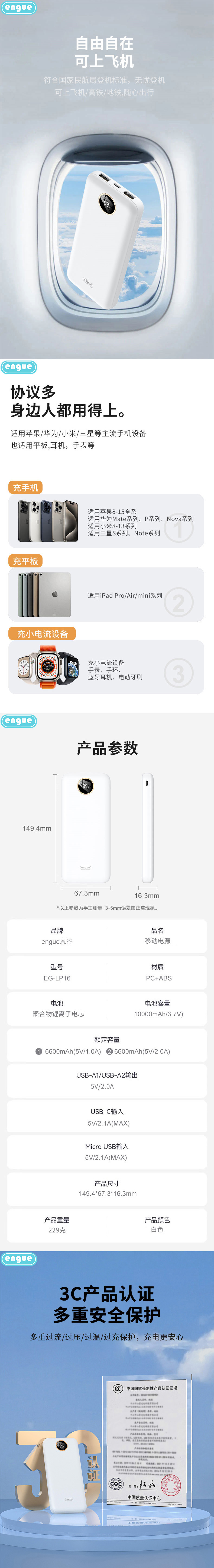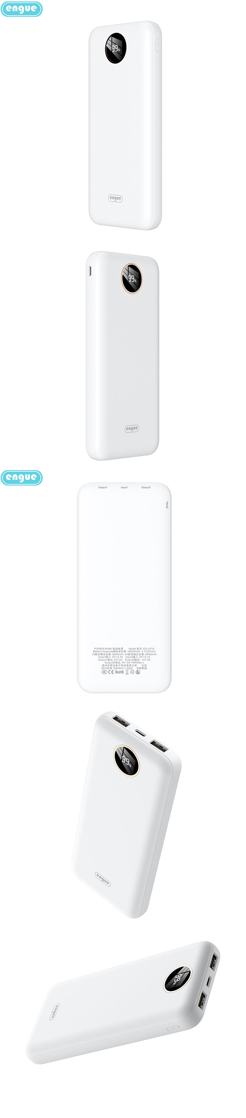 商品名称:ENGUE/恩谷10000mAh纤薄大容量移动电源-白色EG-LP16