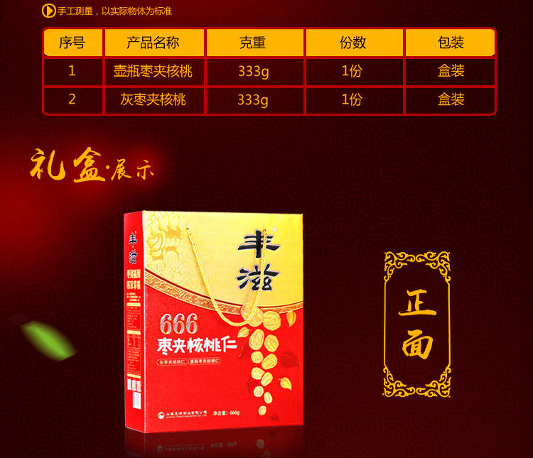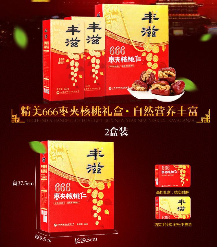 商品名称:丰滋666枣夹核桃仁礼盒666g