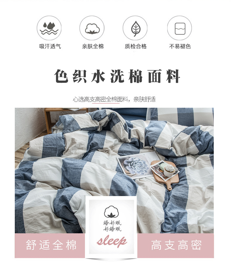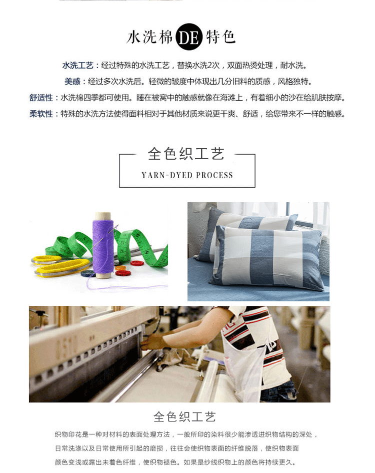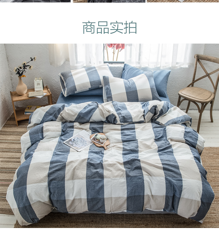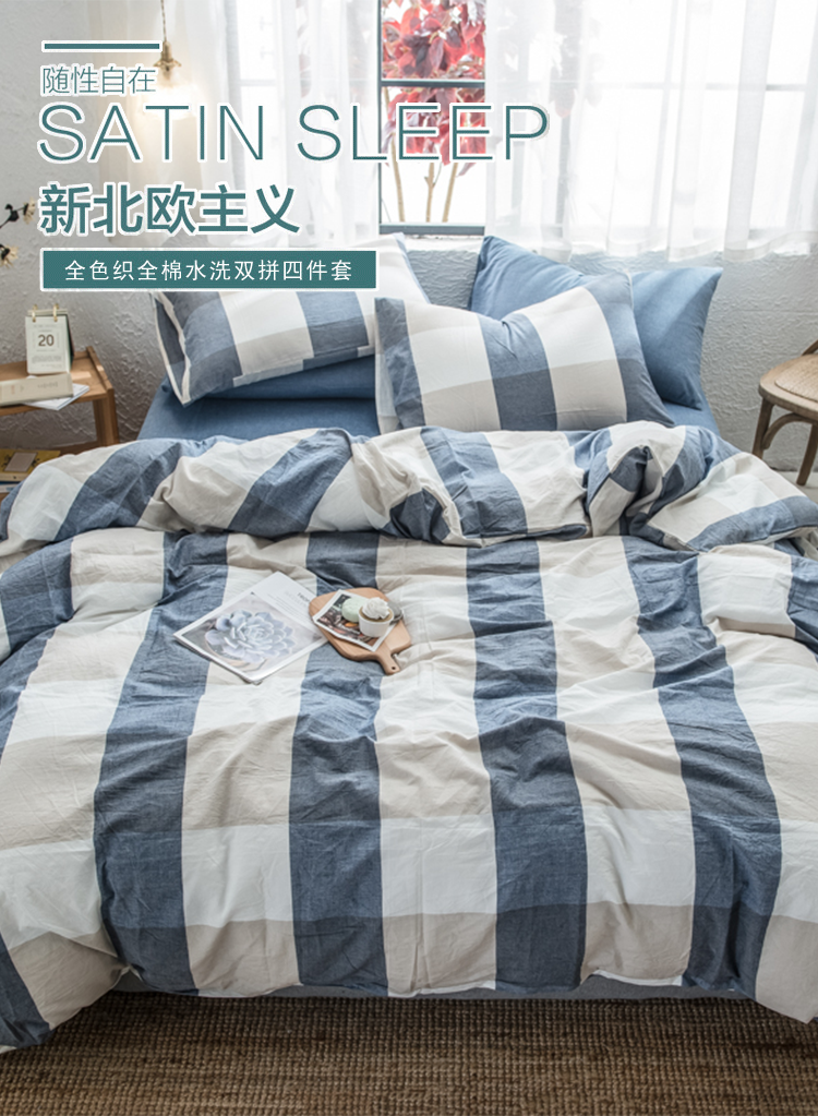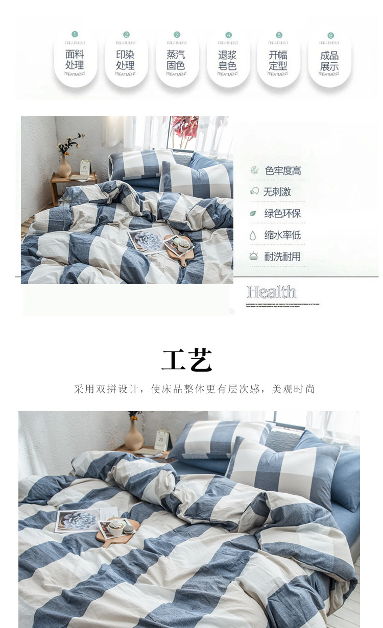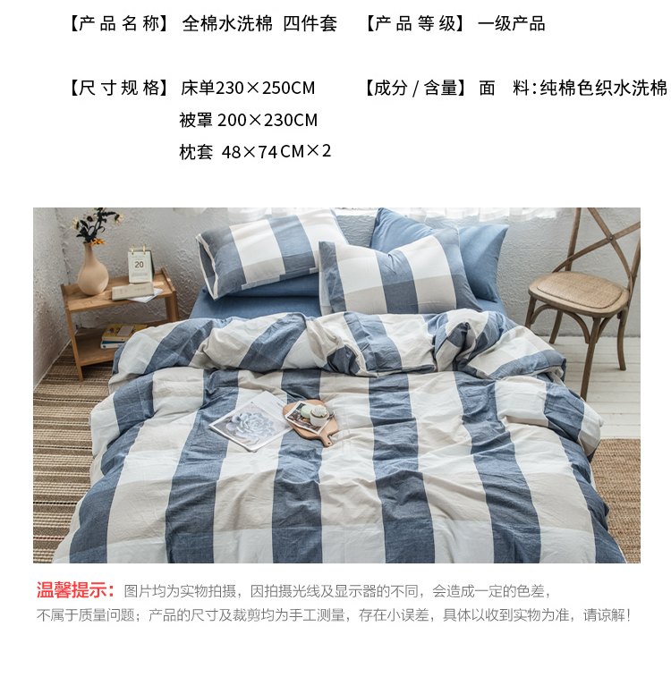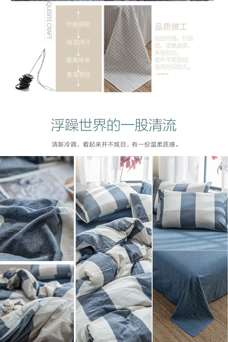 商品名称:PLOVER/科朴啄木鸟全色织全棉水洗双拼床品四件套-蓝色200*230cm
