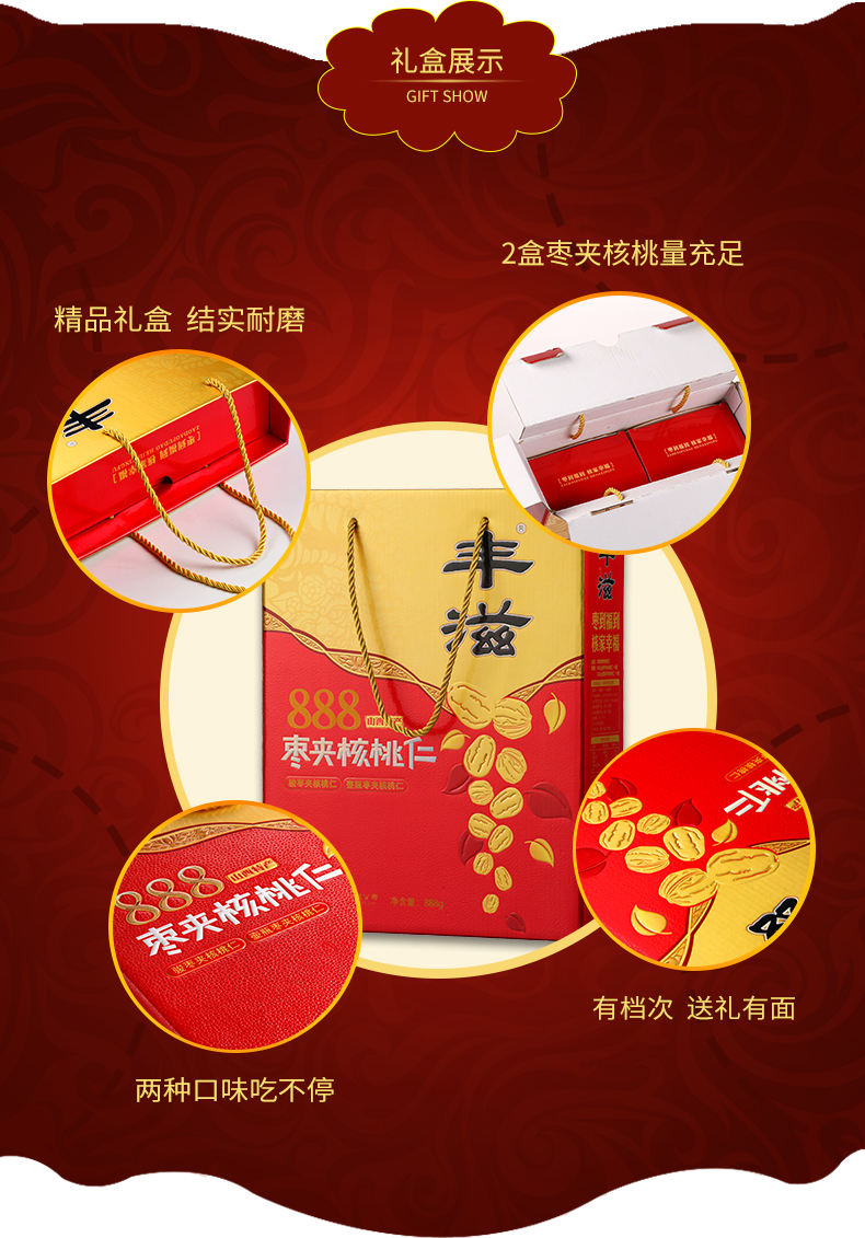 商品名称:丰滋888枣夹核桃仁礼盒888g