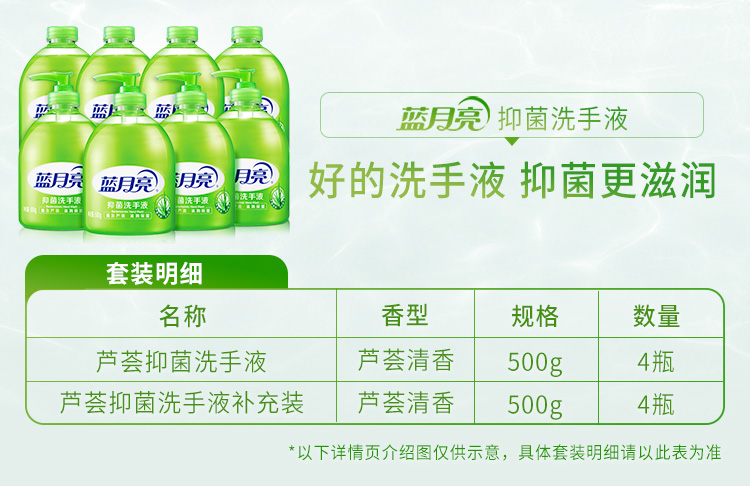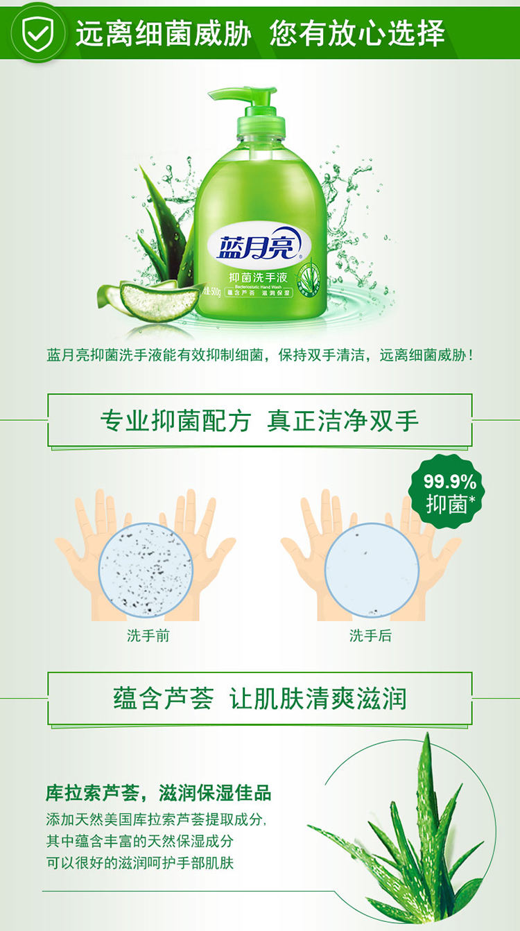 商品名称:蓝月亮抑菌洗手液-芦荟清香500g*8瓶10001483*2