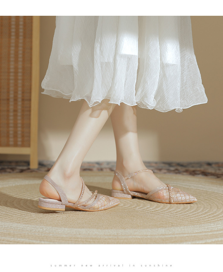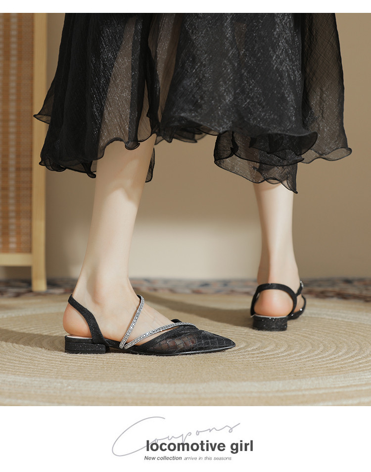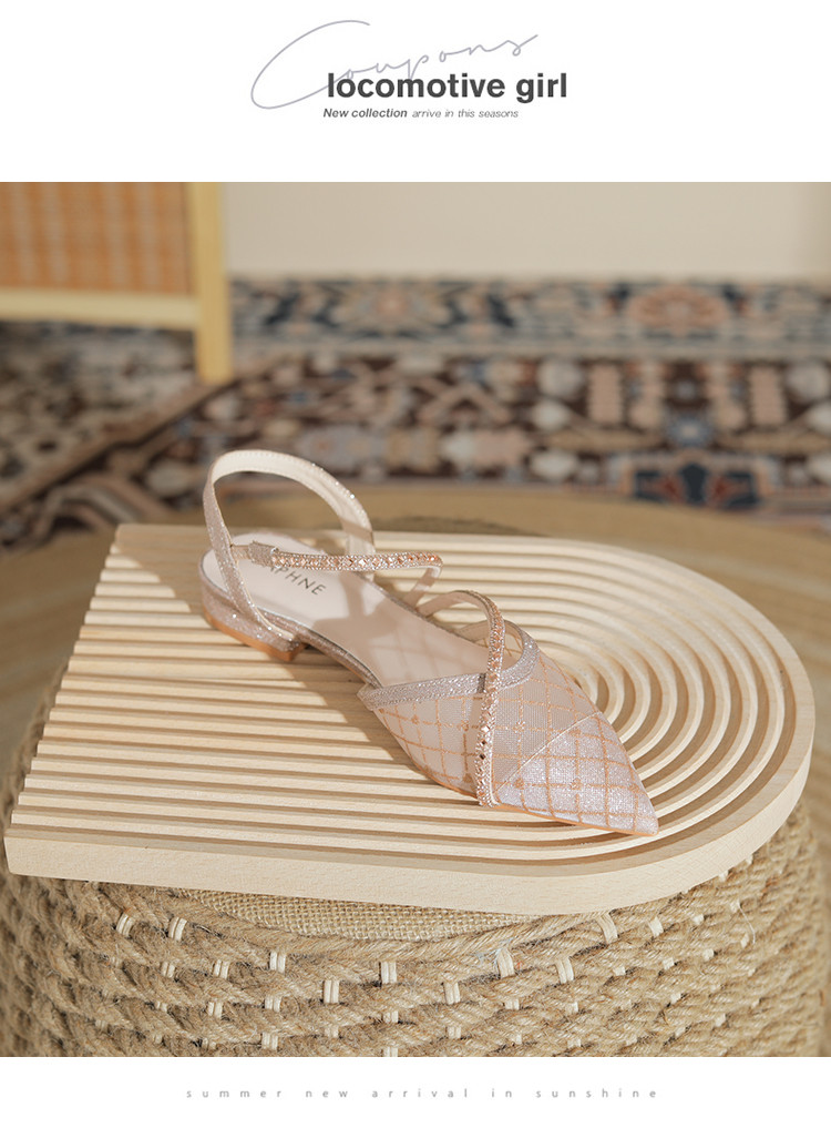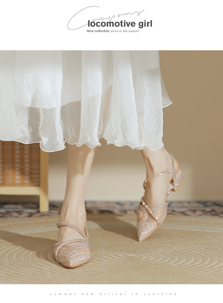 【简约百搭】包头时尚仙女风凉鞋女夏季新款粗跟尖头网纱单鞋女 683799