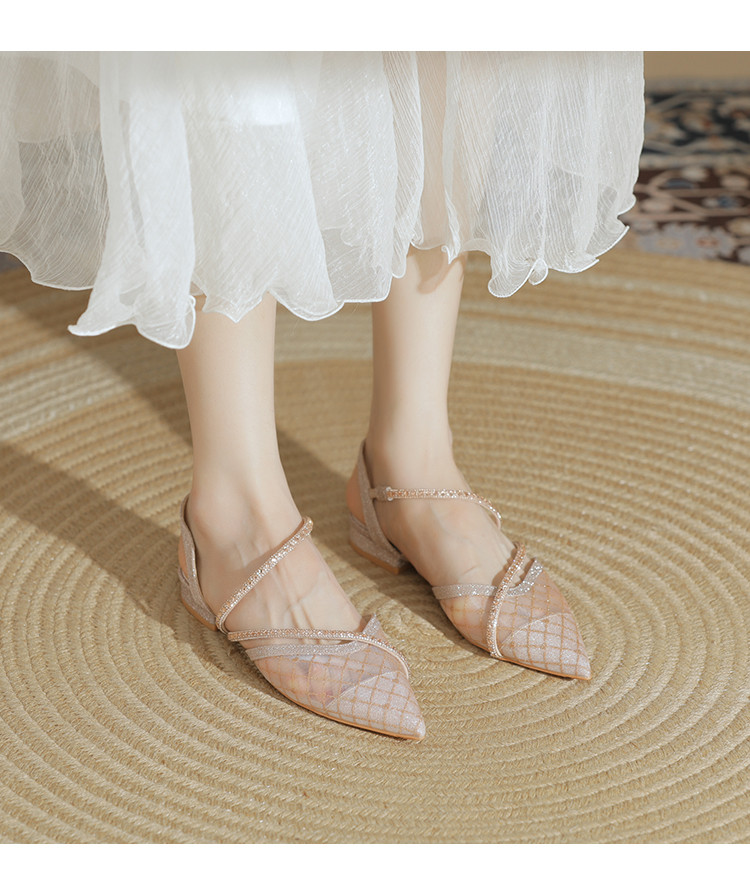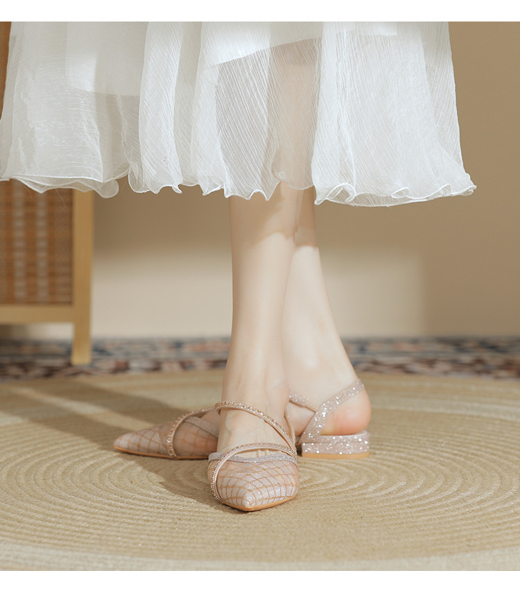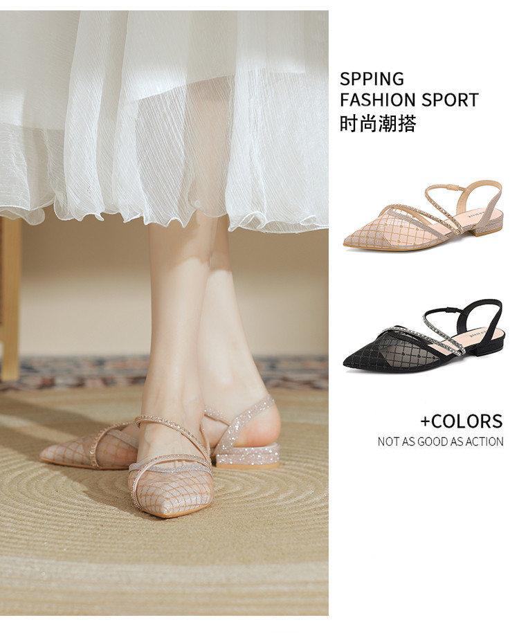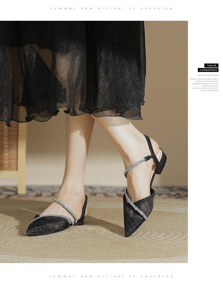 商品名称:【简约百搭】包头时尚仙女风凉鞋女夏季新款粗跟尖头网纱单鞋女 683799