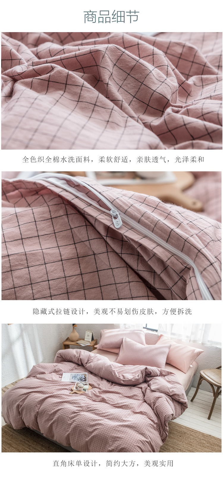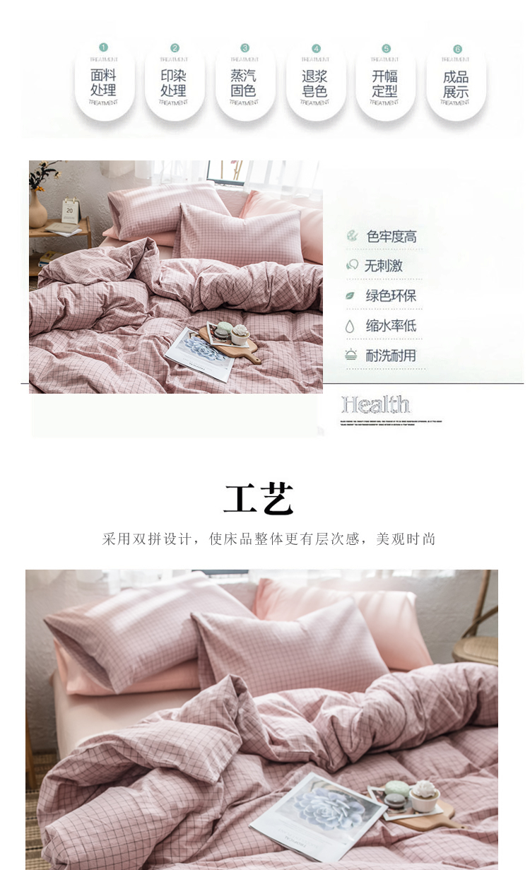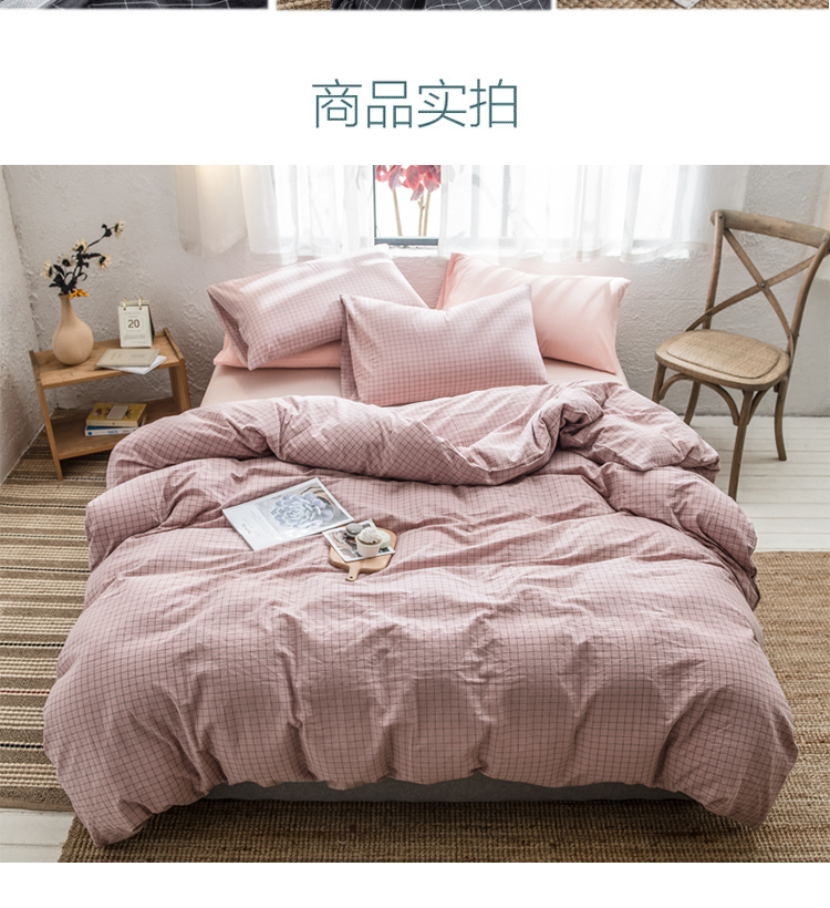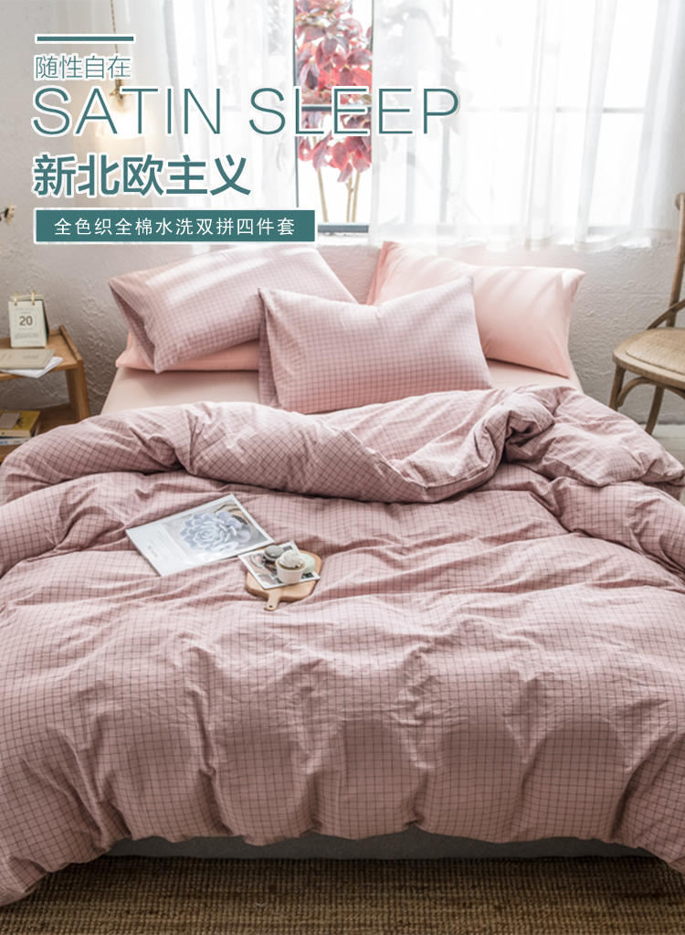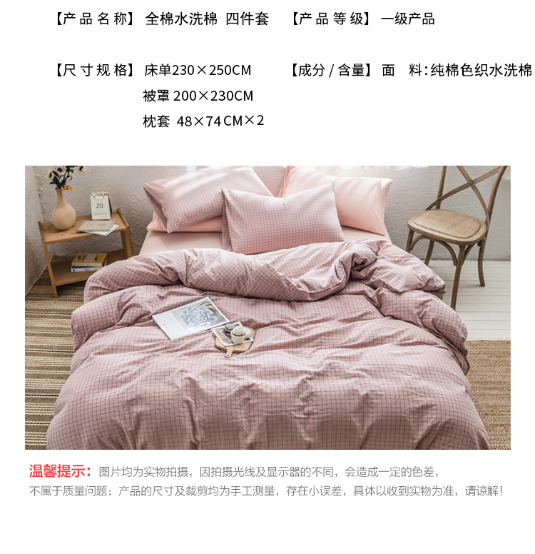 商品名称:PLOVER/啄木鸟全色织全棉水洗双拼床品四件套-粉色200*230cm