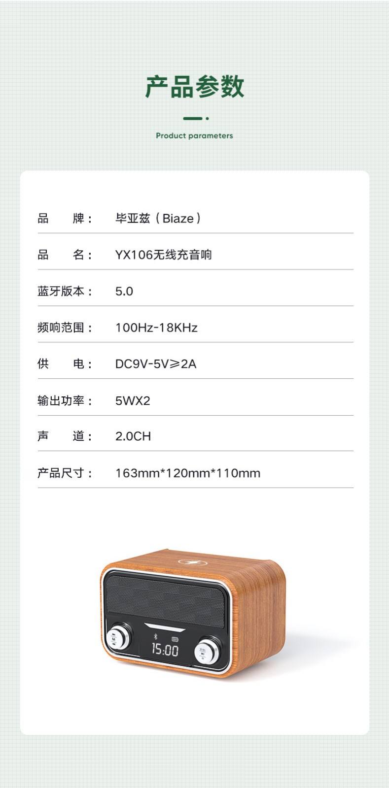 商品名称:BIAZE/毕亚兹无线充音响YX106