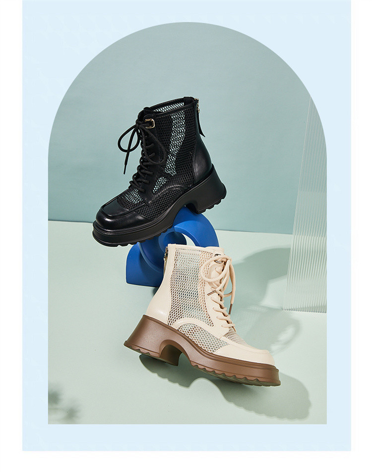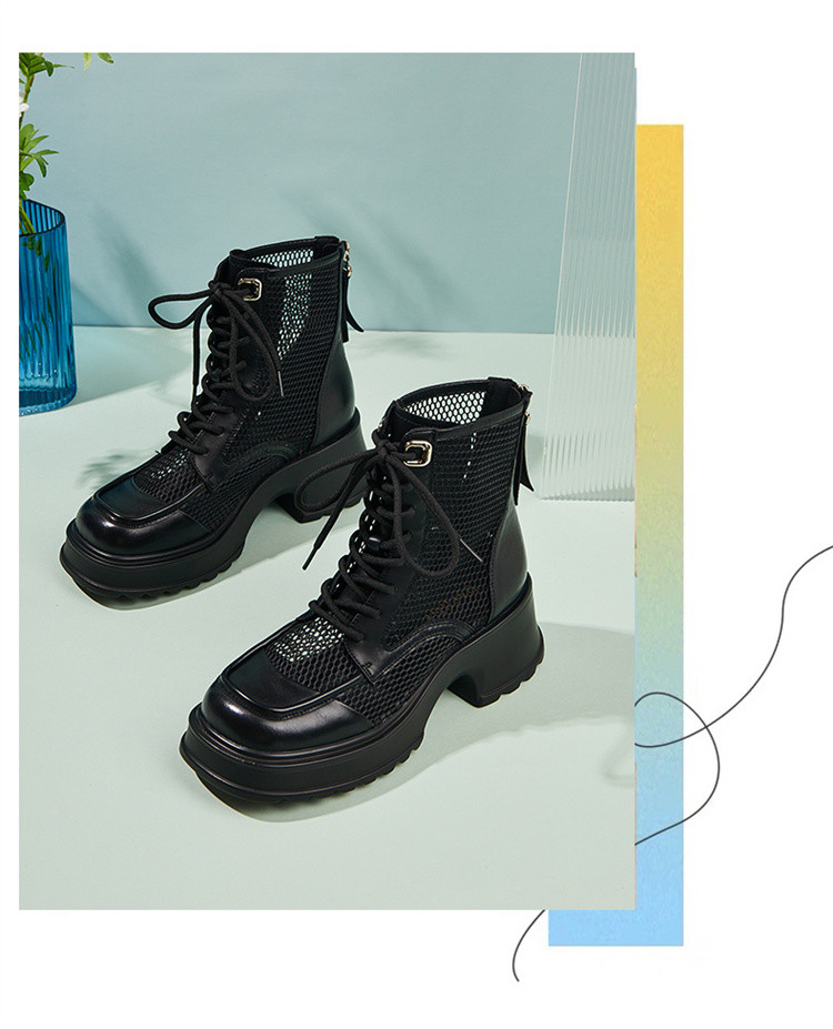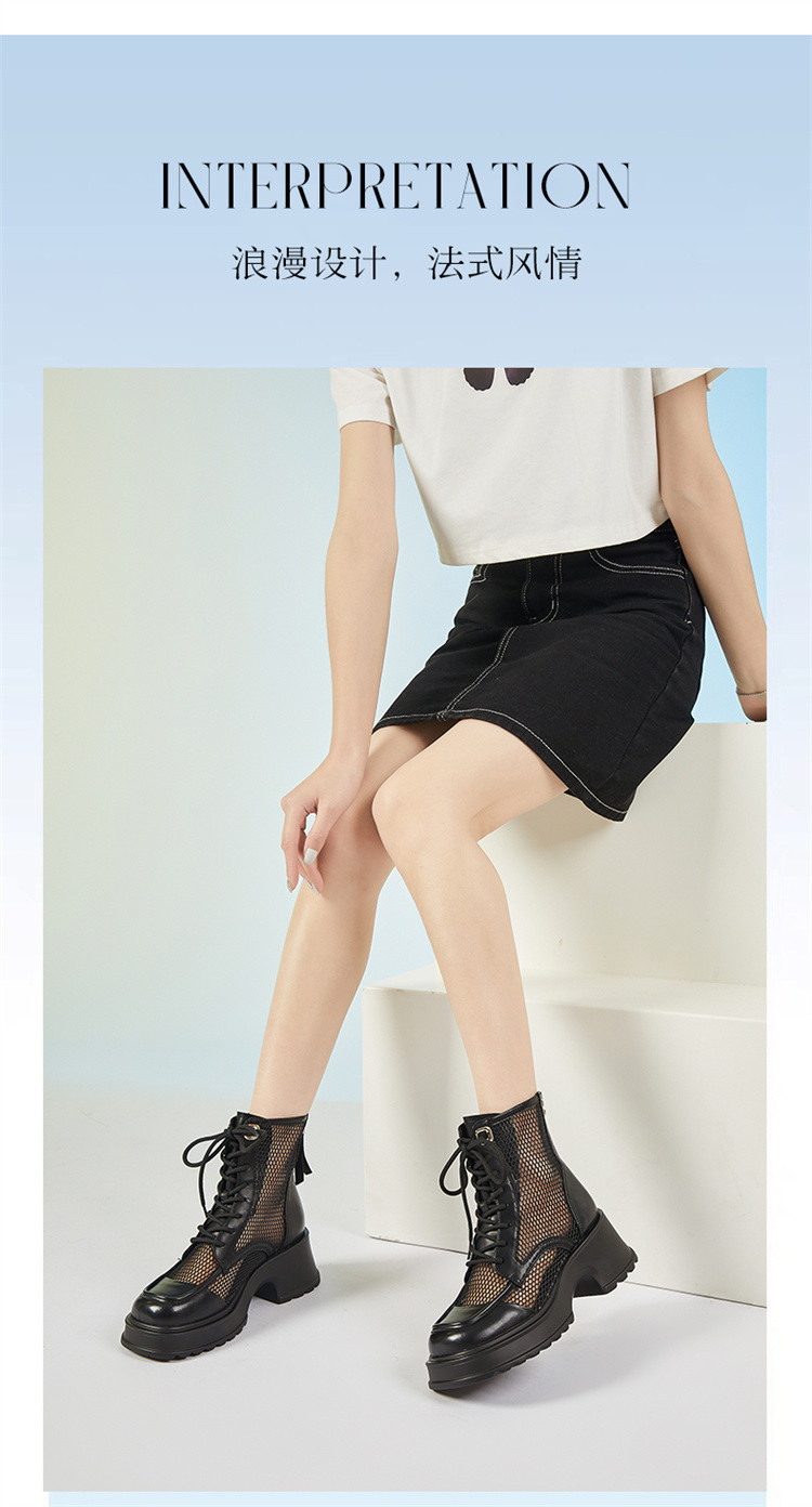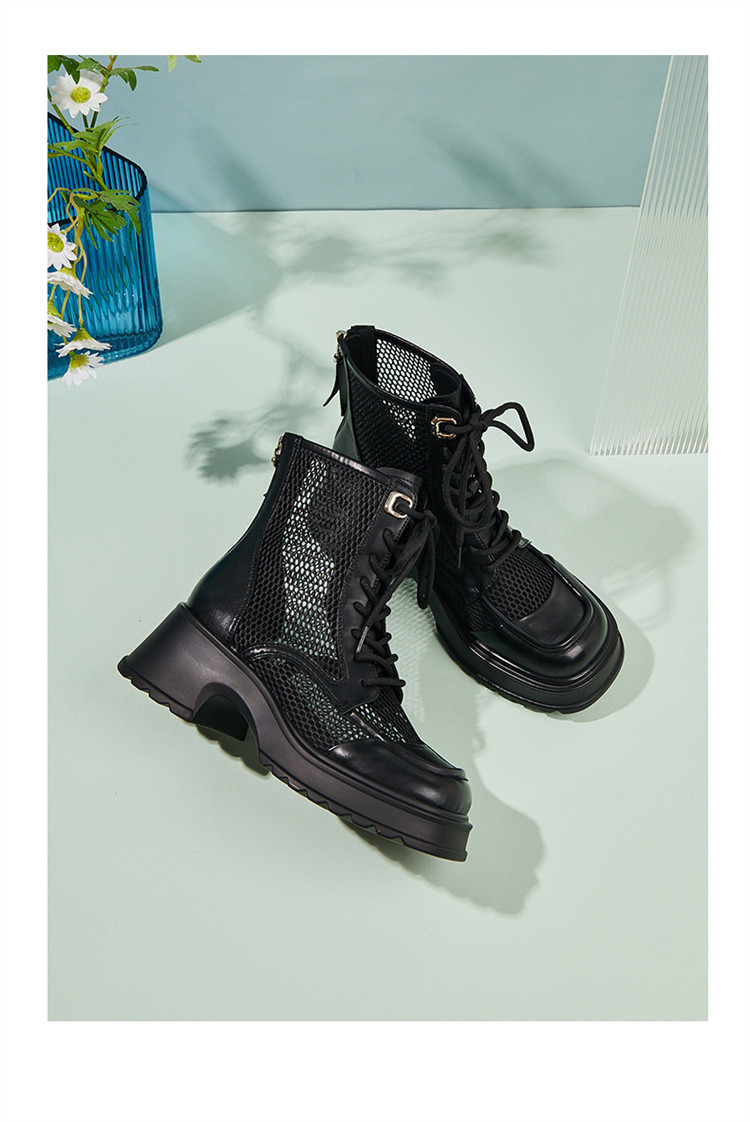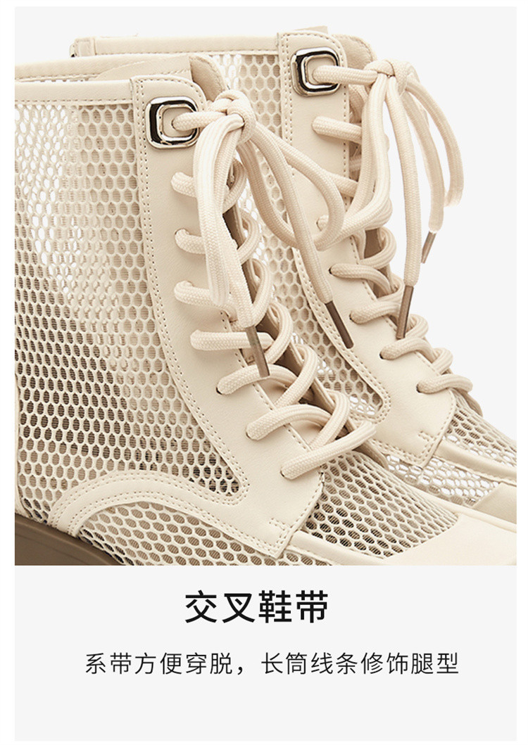 商品名称:夏季薄款马丁靴中筒凉靴舒适透气网面女鞋小众设计渔网靴子凉鞋 137111