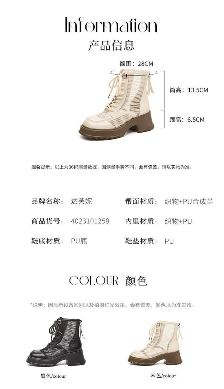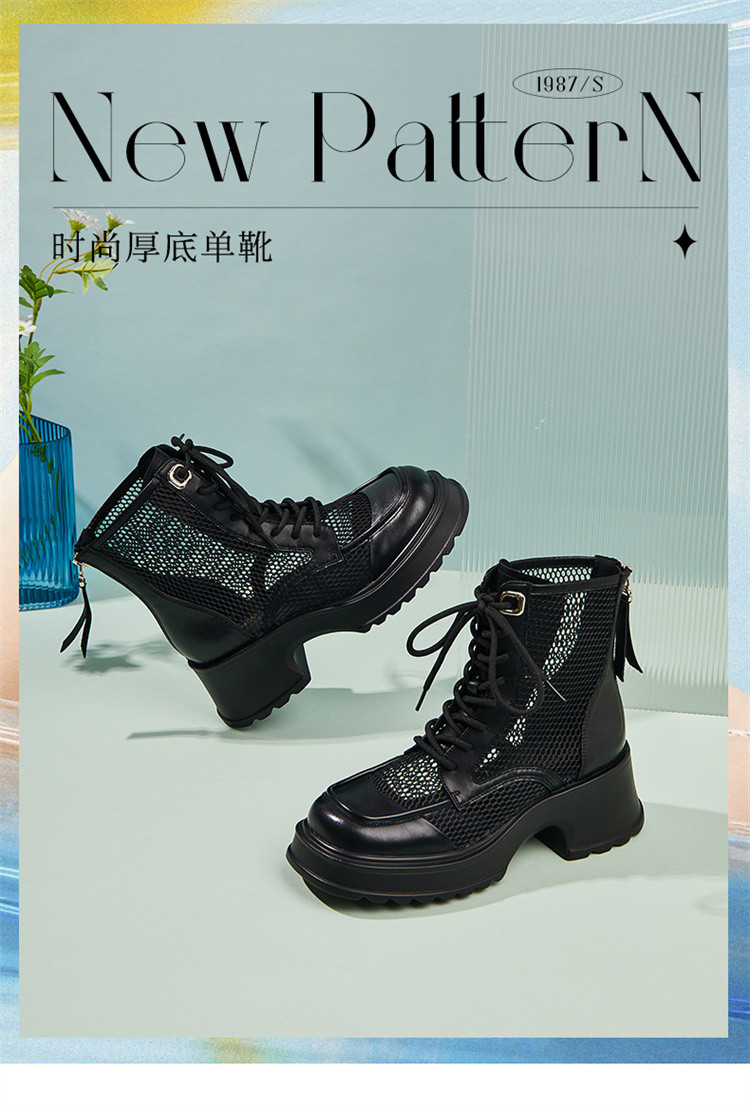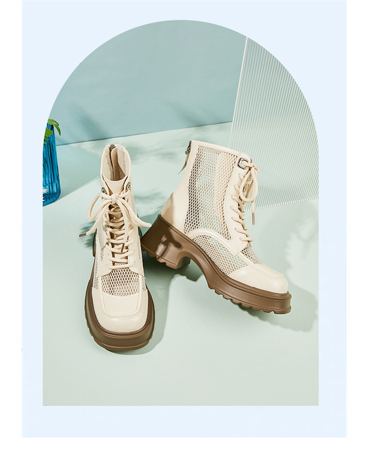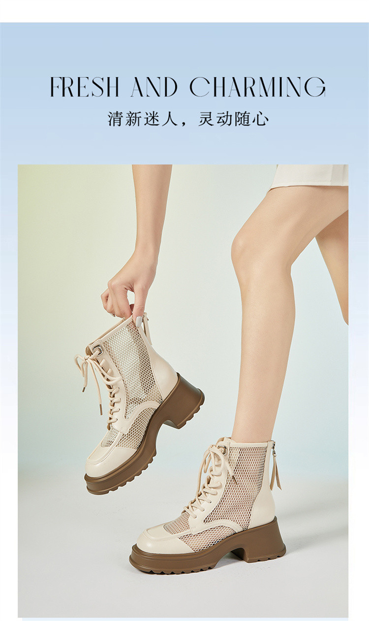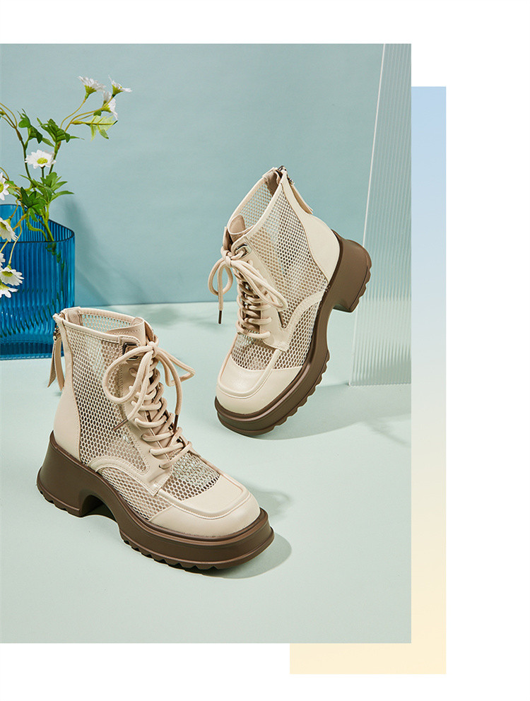 商品名称:夏季薄款马丁靴中筒凉靴舒适透气网面女鞋小众设计渔网靴子凉鞋 137111