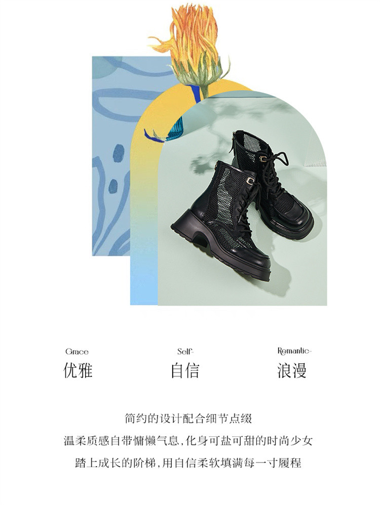 夏季薄款马丁靴中筒凉靴舒适透气网面女鞋小众设计渔网靴子凉鞋 137111