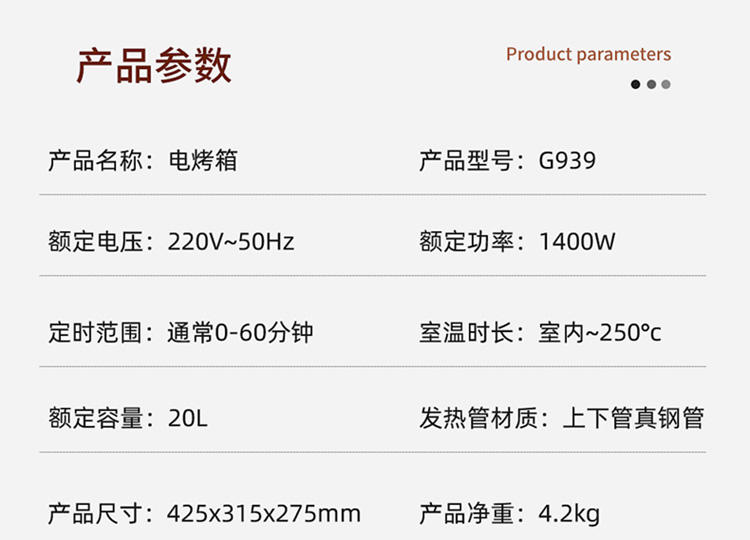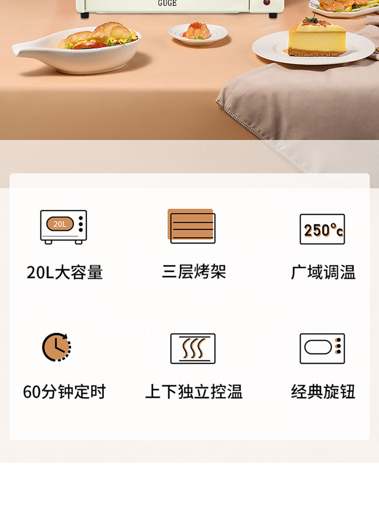 商品名称:GUGE/德国谷格20升多功能电烤箱G939