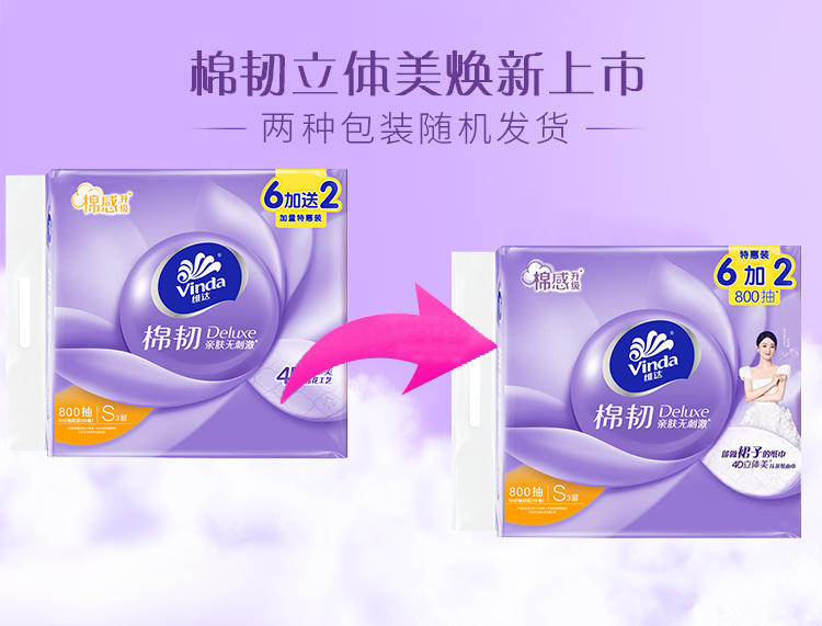 商品名称:Vinda/维达3层立体美抽纸100抽8包*3提