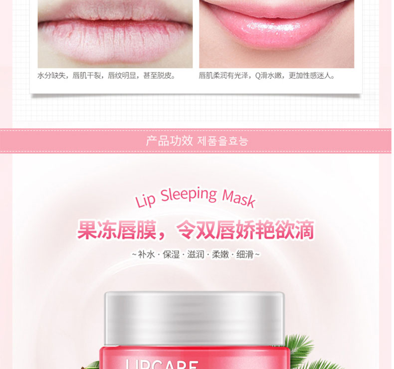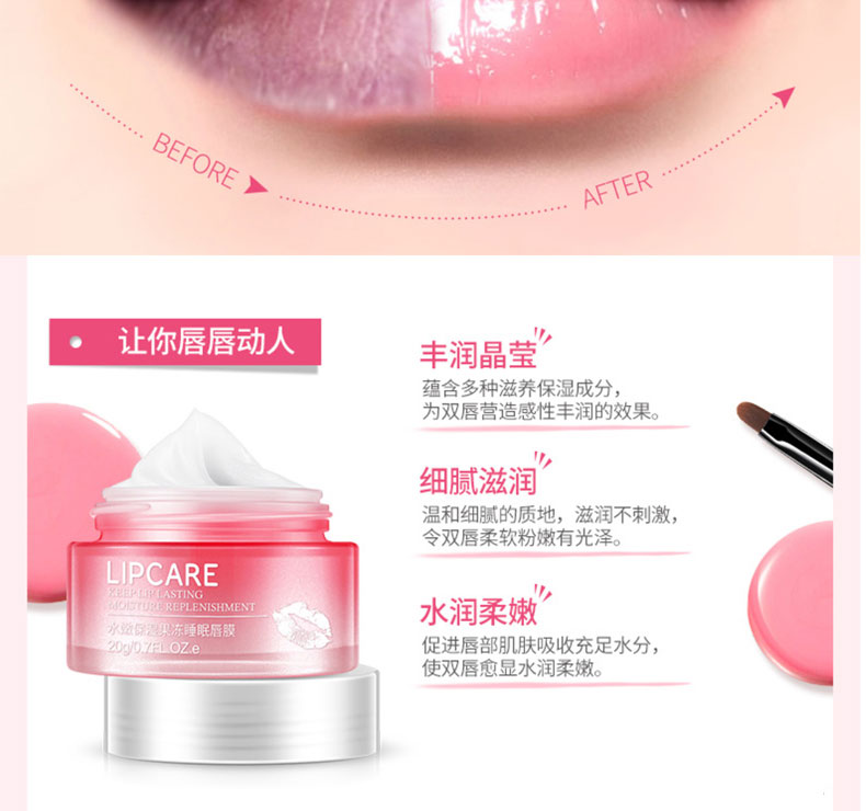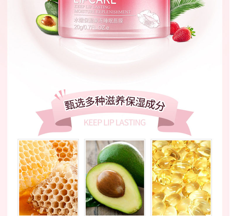 商品名称:泊泉雅 水嫩保湿果冻睡眠唇膜 软化角质滋润保湿 唇部护理 20g