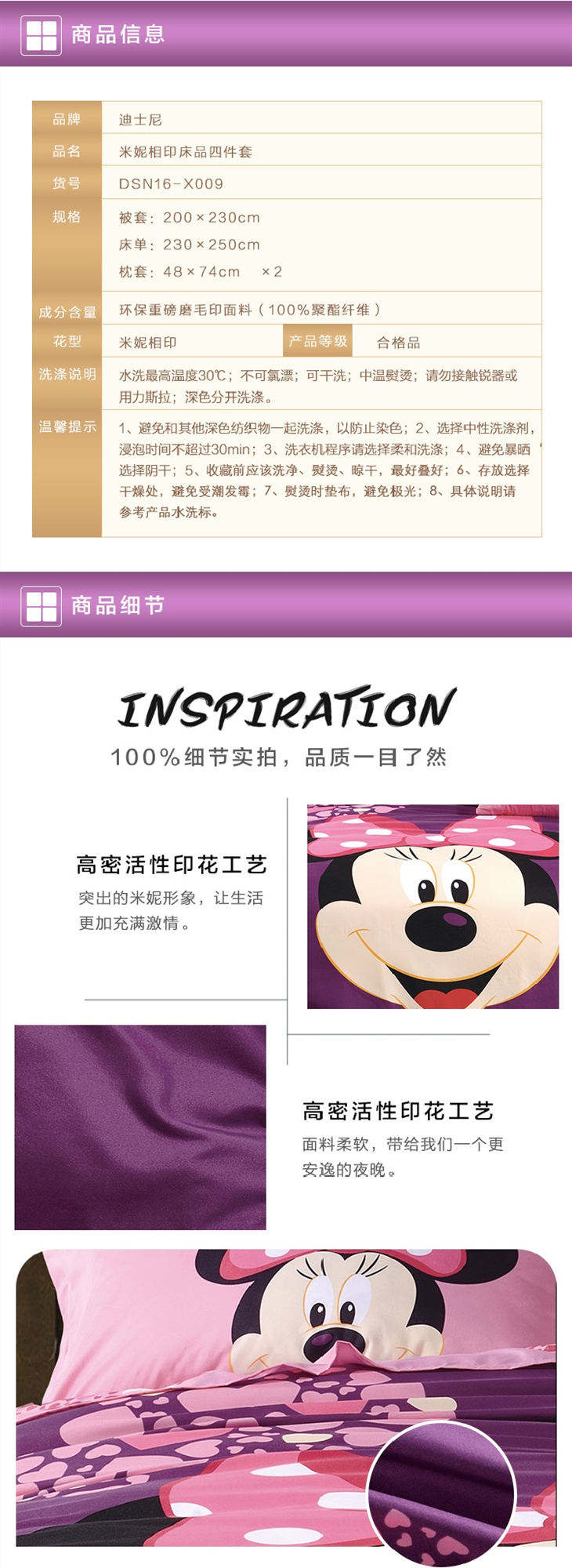 商品名称:DISNEY/迪士尼米妮相印床品四件套200*230cm