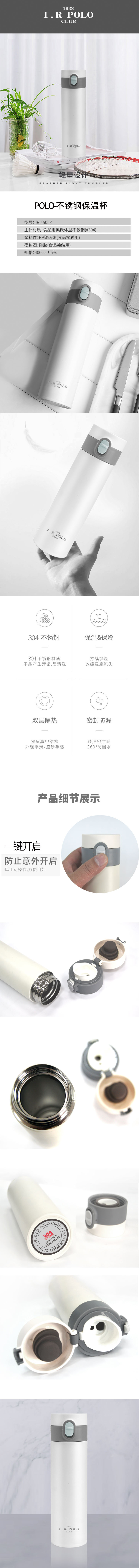 商品名称:1938 I.R POLO CLUB/爱尔兰保罗400毫升不锈钢保温杯IR-450LZ