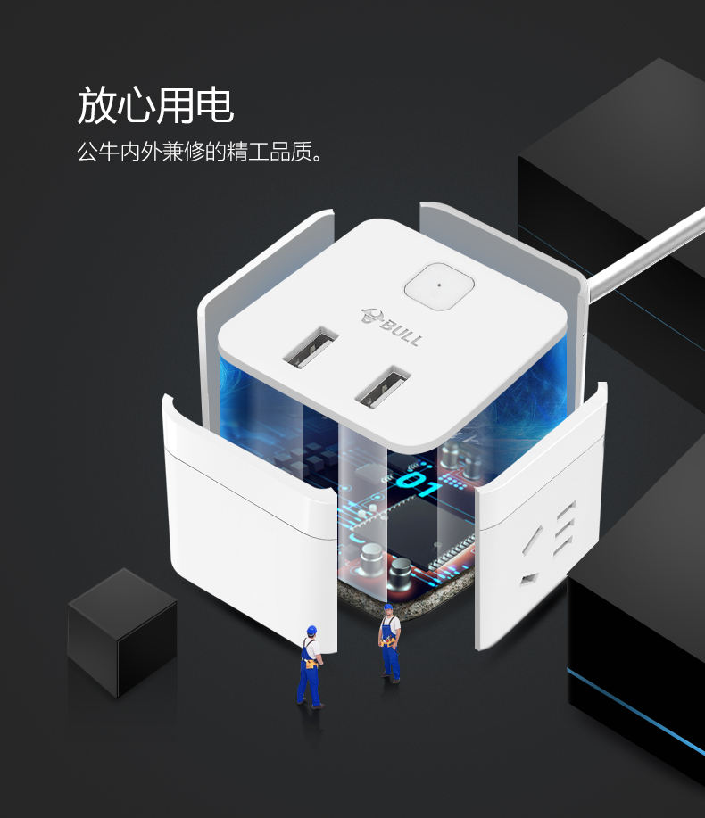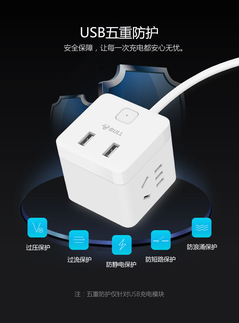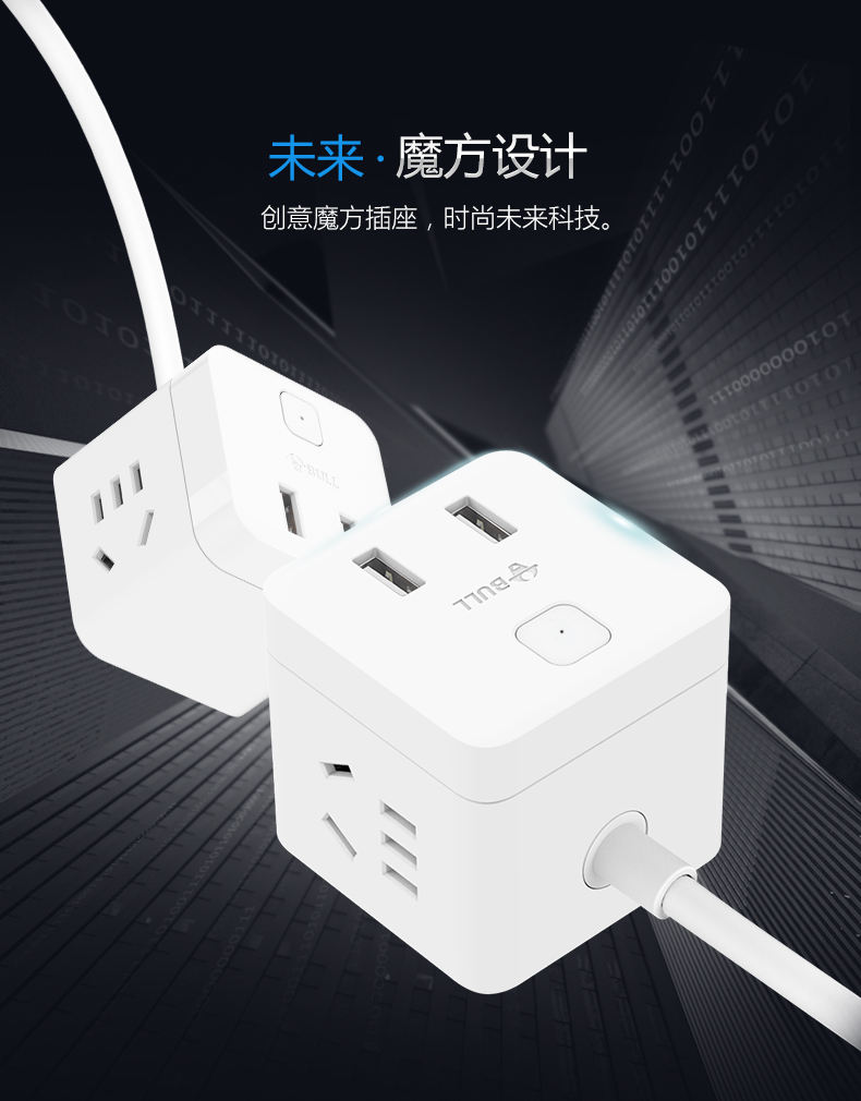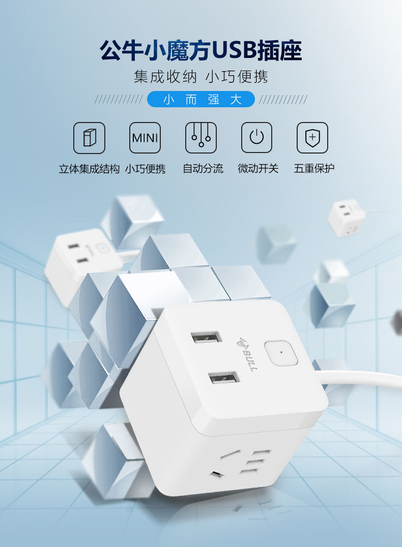 BULL/公牛 小魔方USB插座 1.5m GNV-UUTQ12